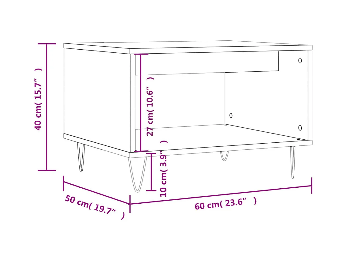 Table basse chêne sonoma 100x50x40cm bois d'ingénierie et métal FR36330