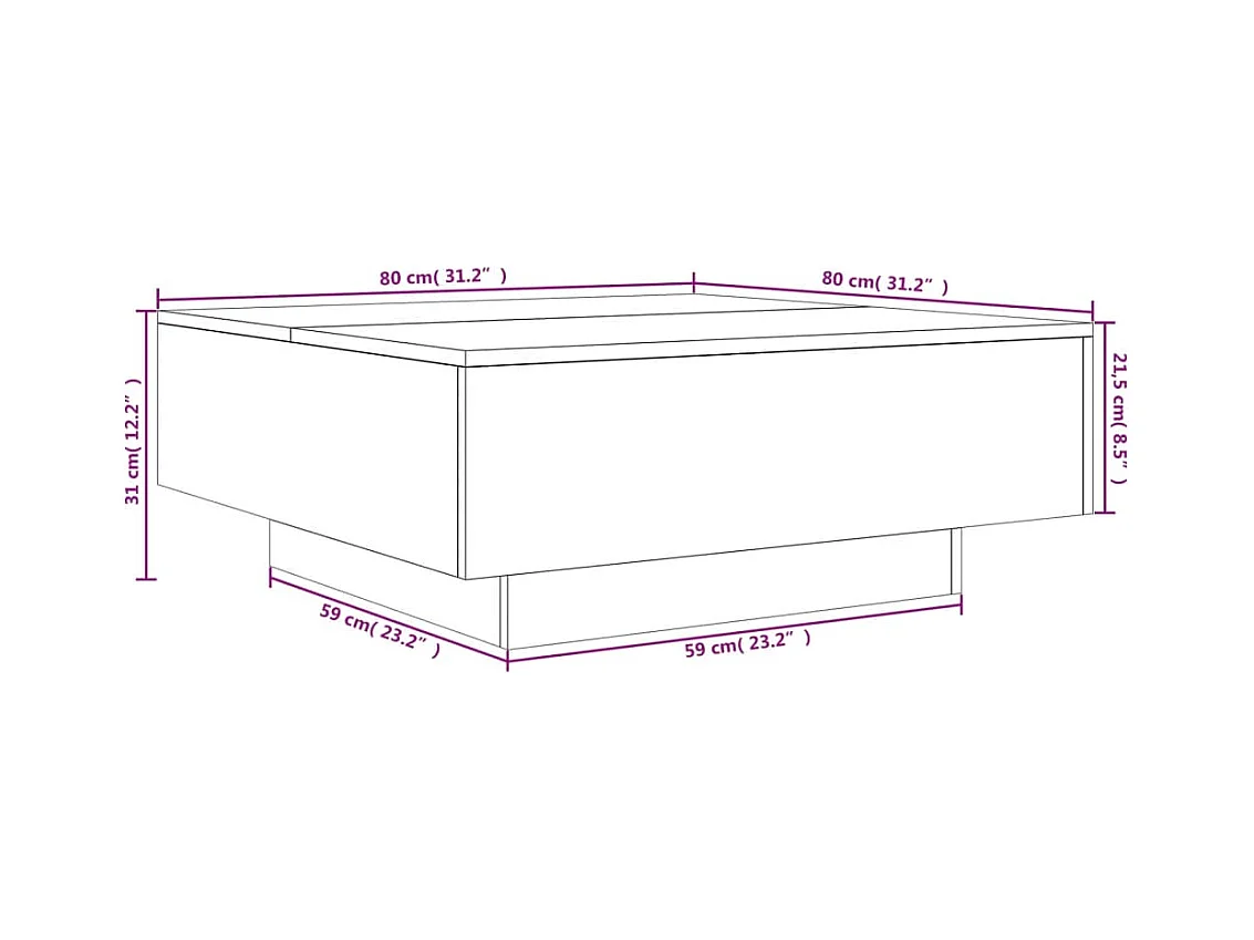 Table basse avec lumières LED chêne sonoma 80x80x31 cm