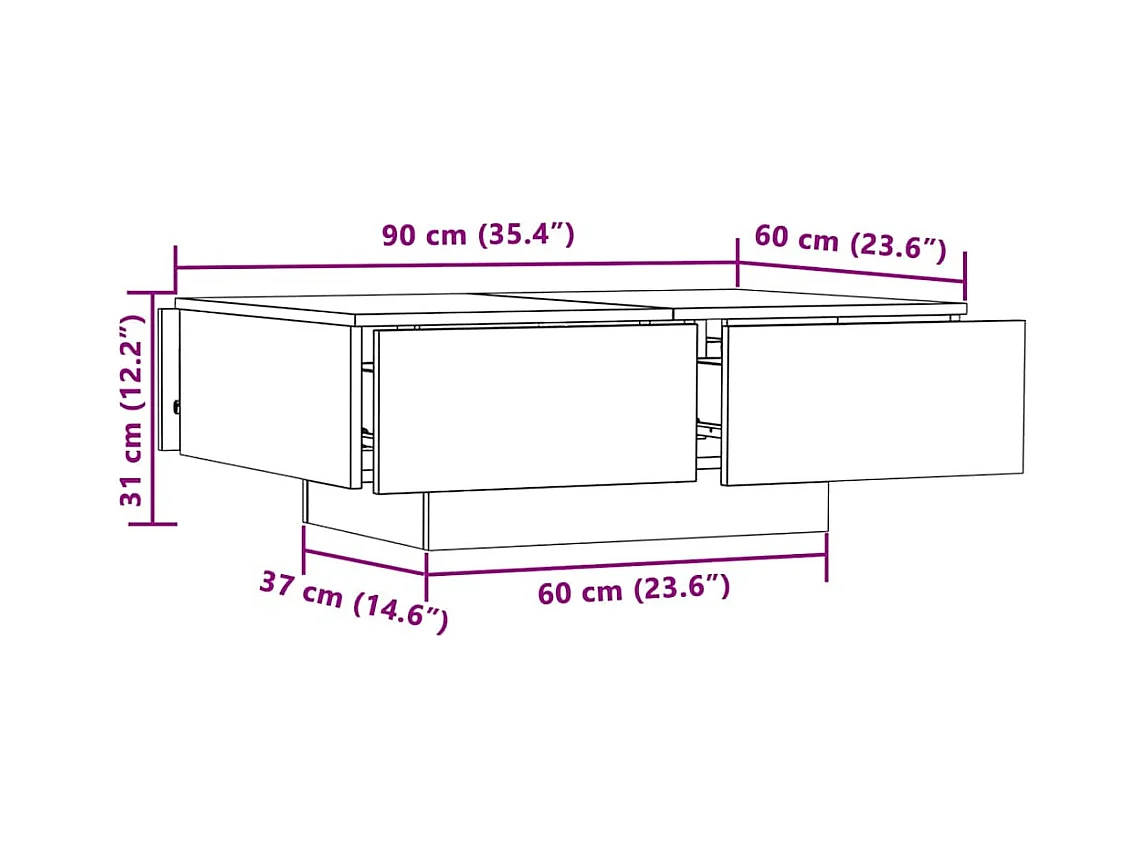 Table basse chêne sonoma 90x60x31 cm bois d'ingénierie