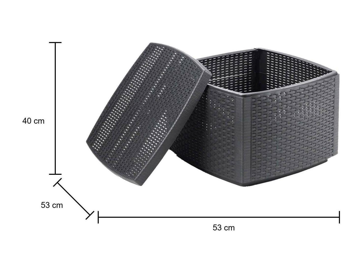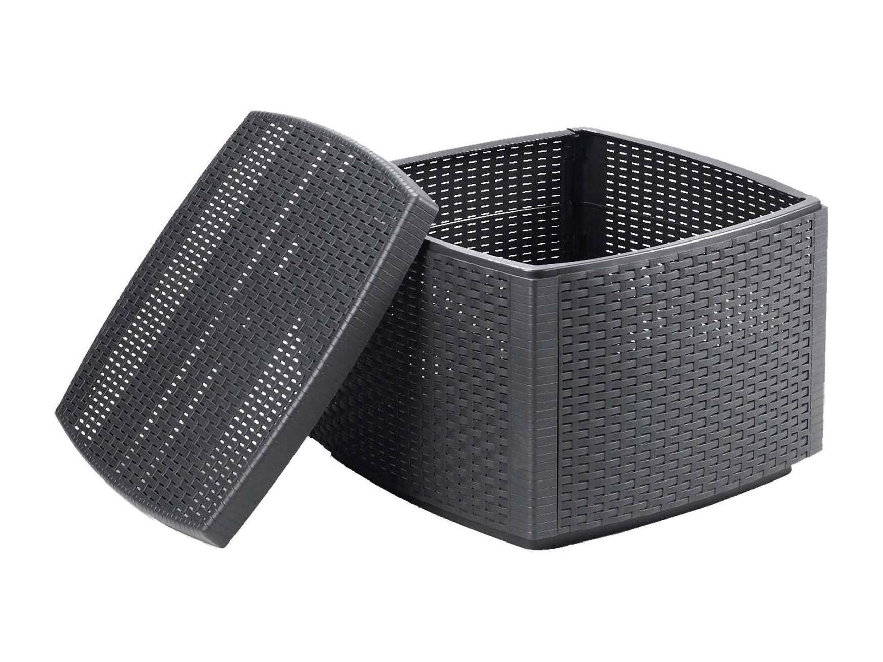 Table basse d'extérieur Dcupid, Table de rangement polyvalente, Etagère basse effet rotin, 100% Made in Italy, 53x53h40 cm, Anthracite