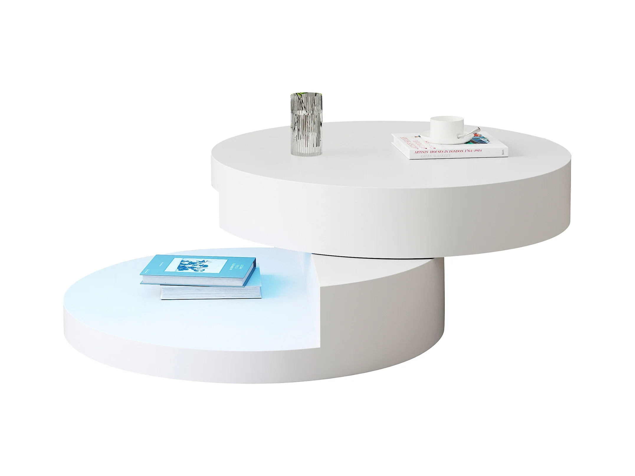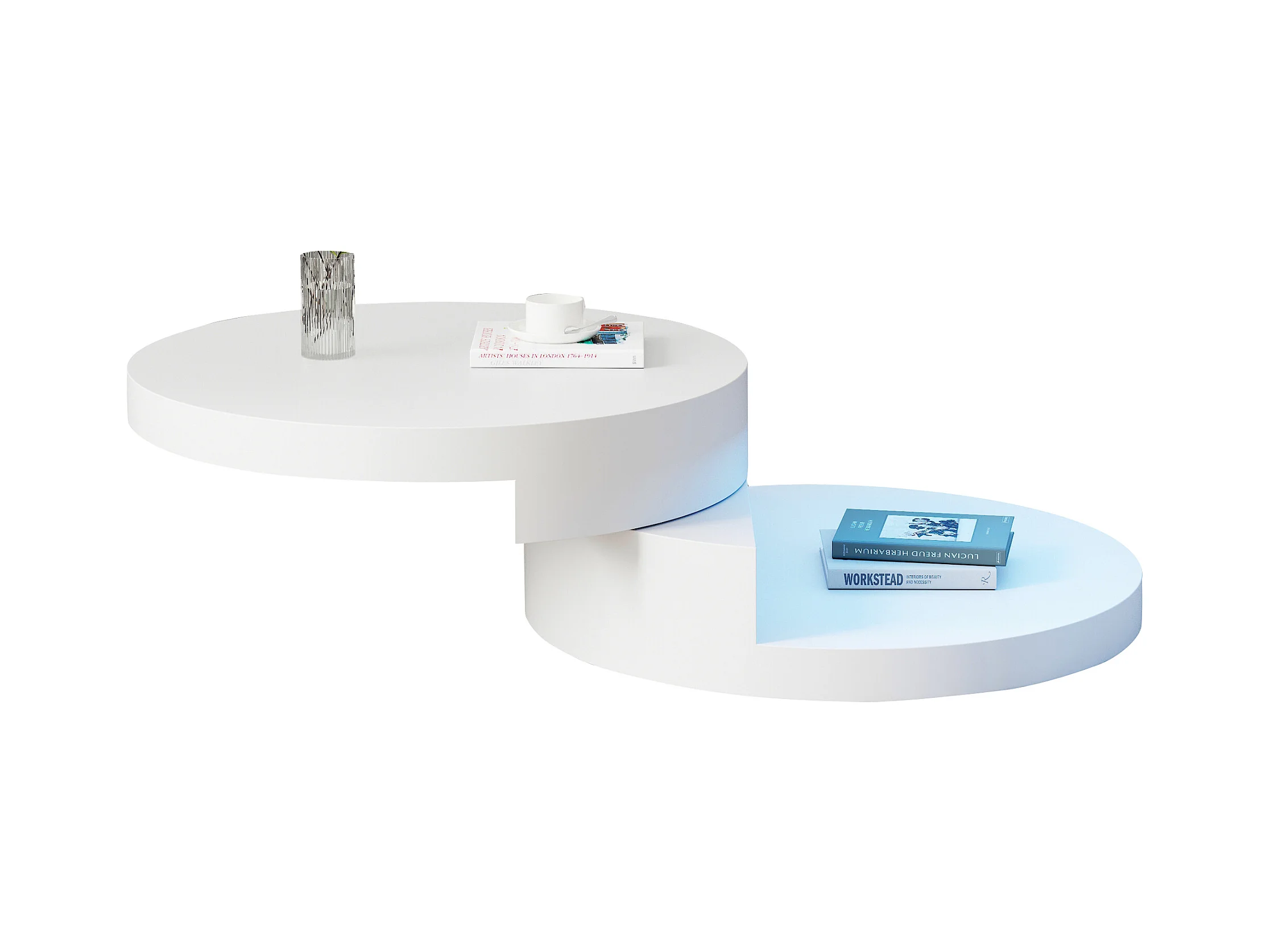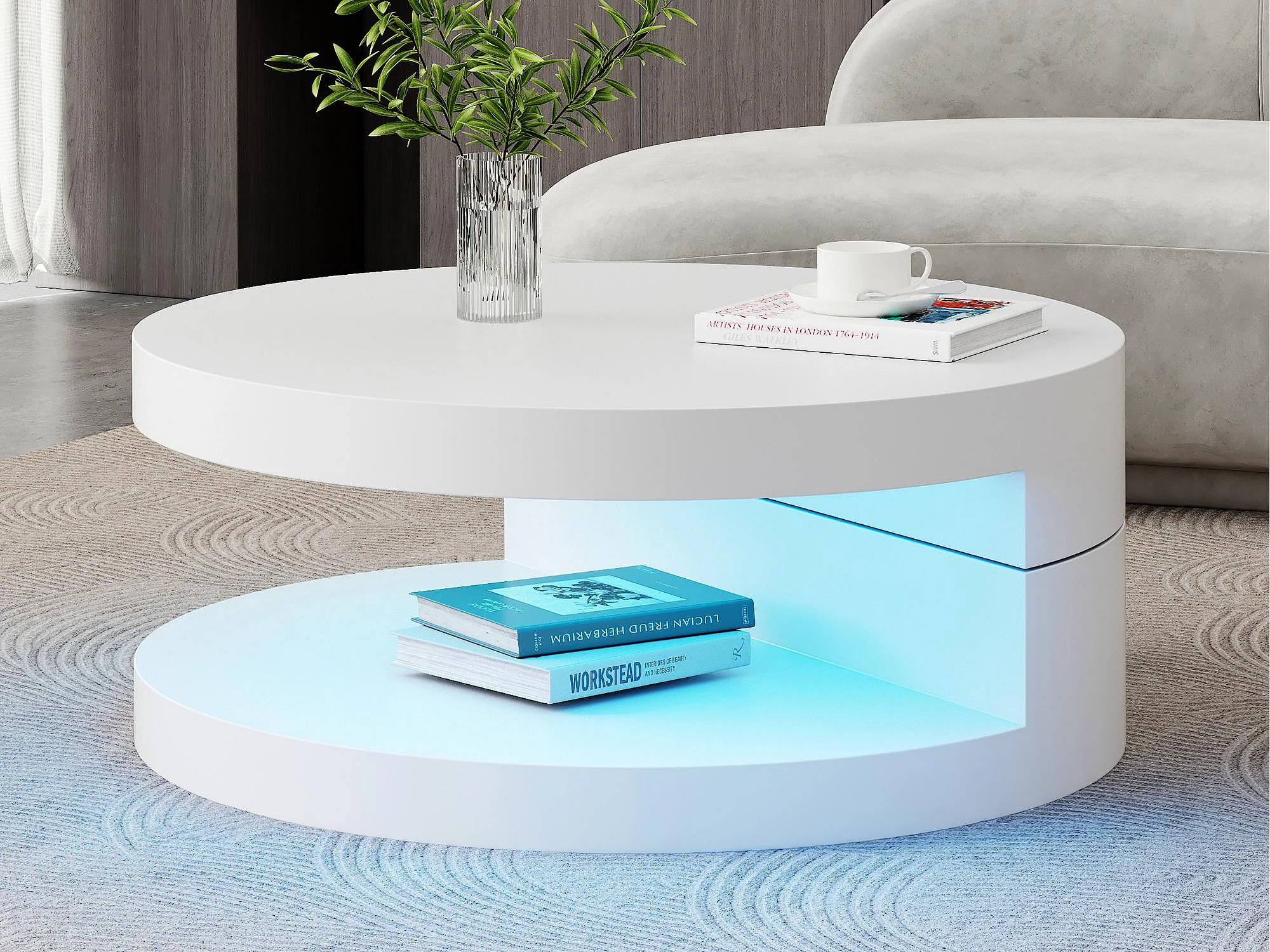 Table basse cylindrique rotative 70x70x35.5 cm - Plateau pivotant à 360° - avec éclairage LED - Blanc