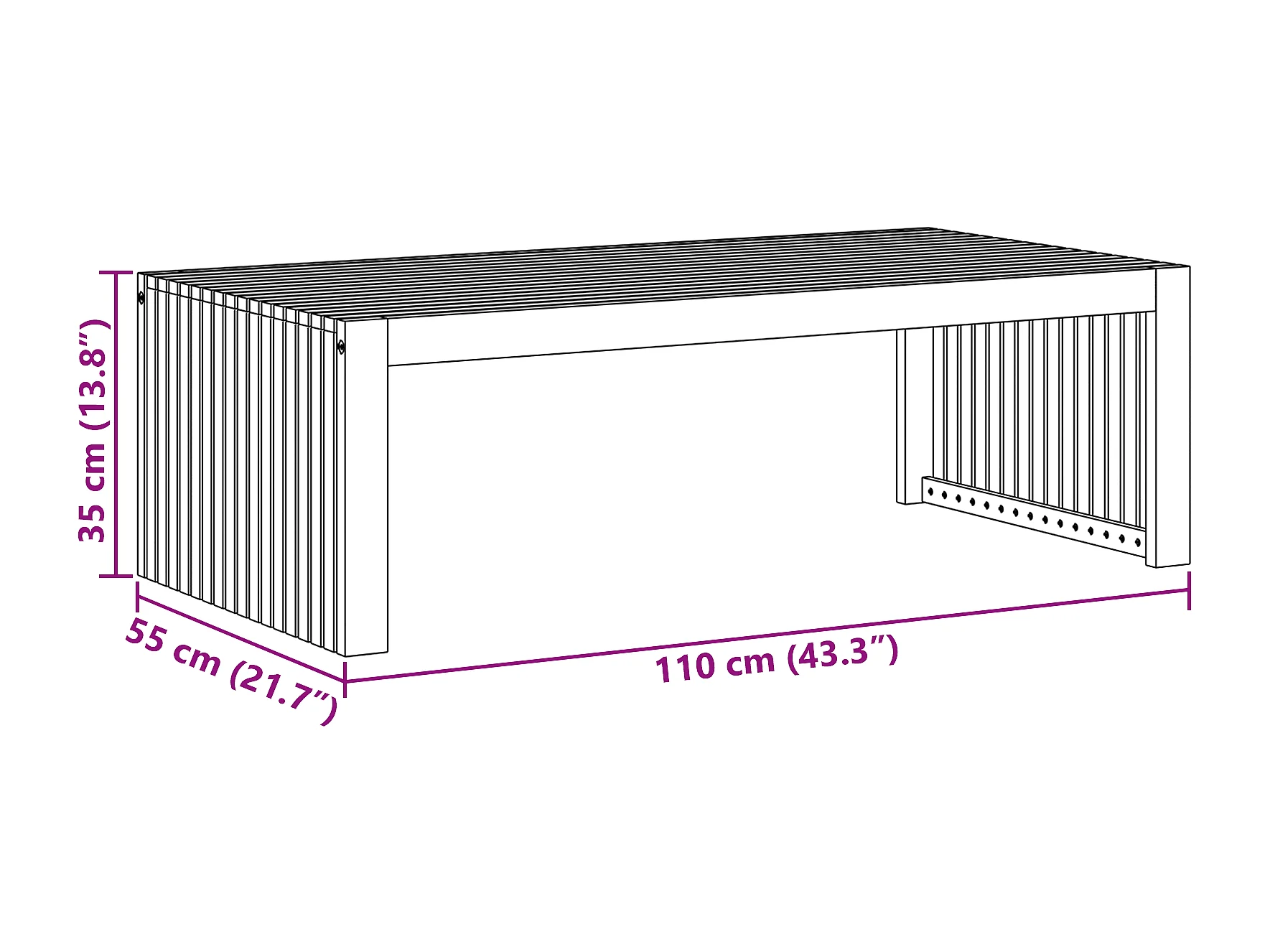 Table Basse de Jardin 110x55x35 cm Bois Massif Acacia