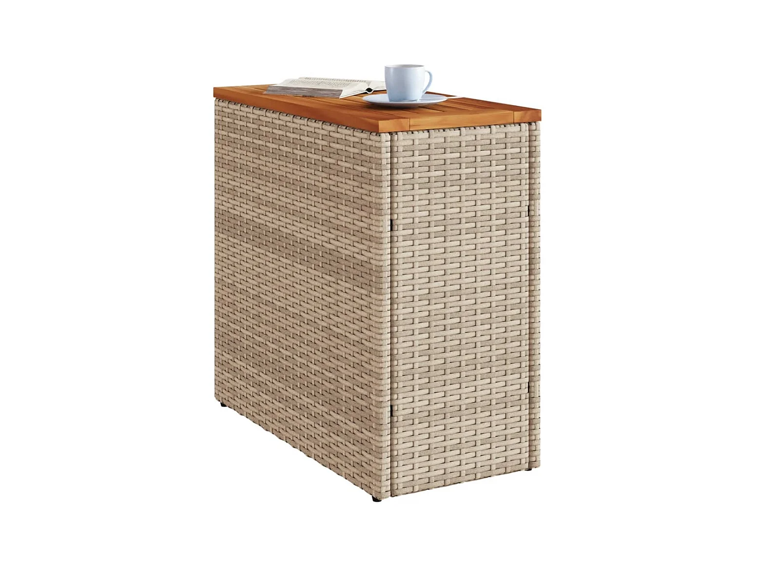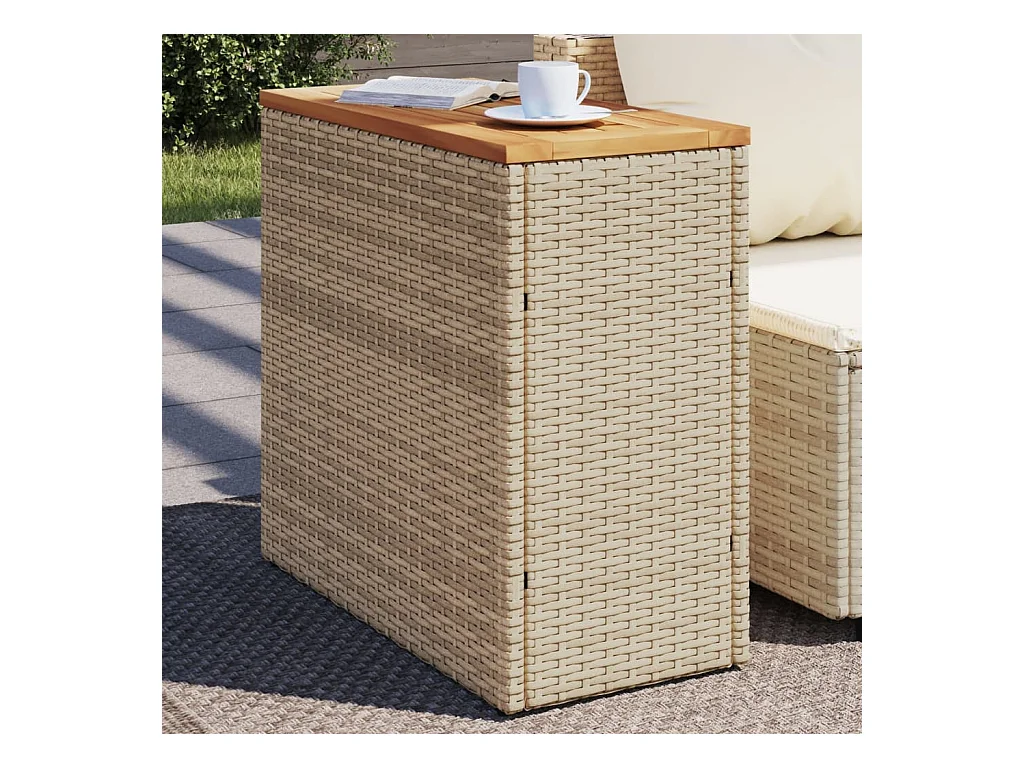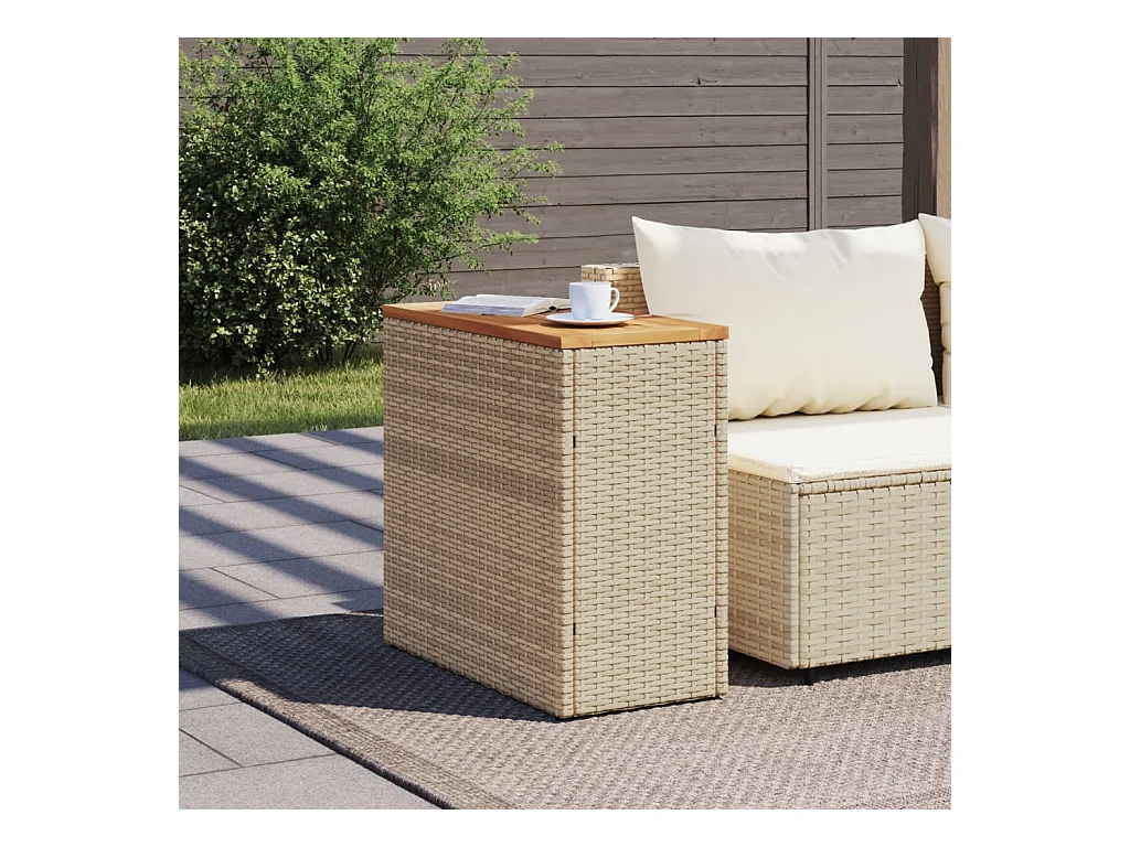 Table de jardin beige 70x70x25 cm résine tressée et bois acacia