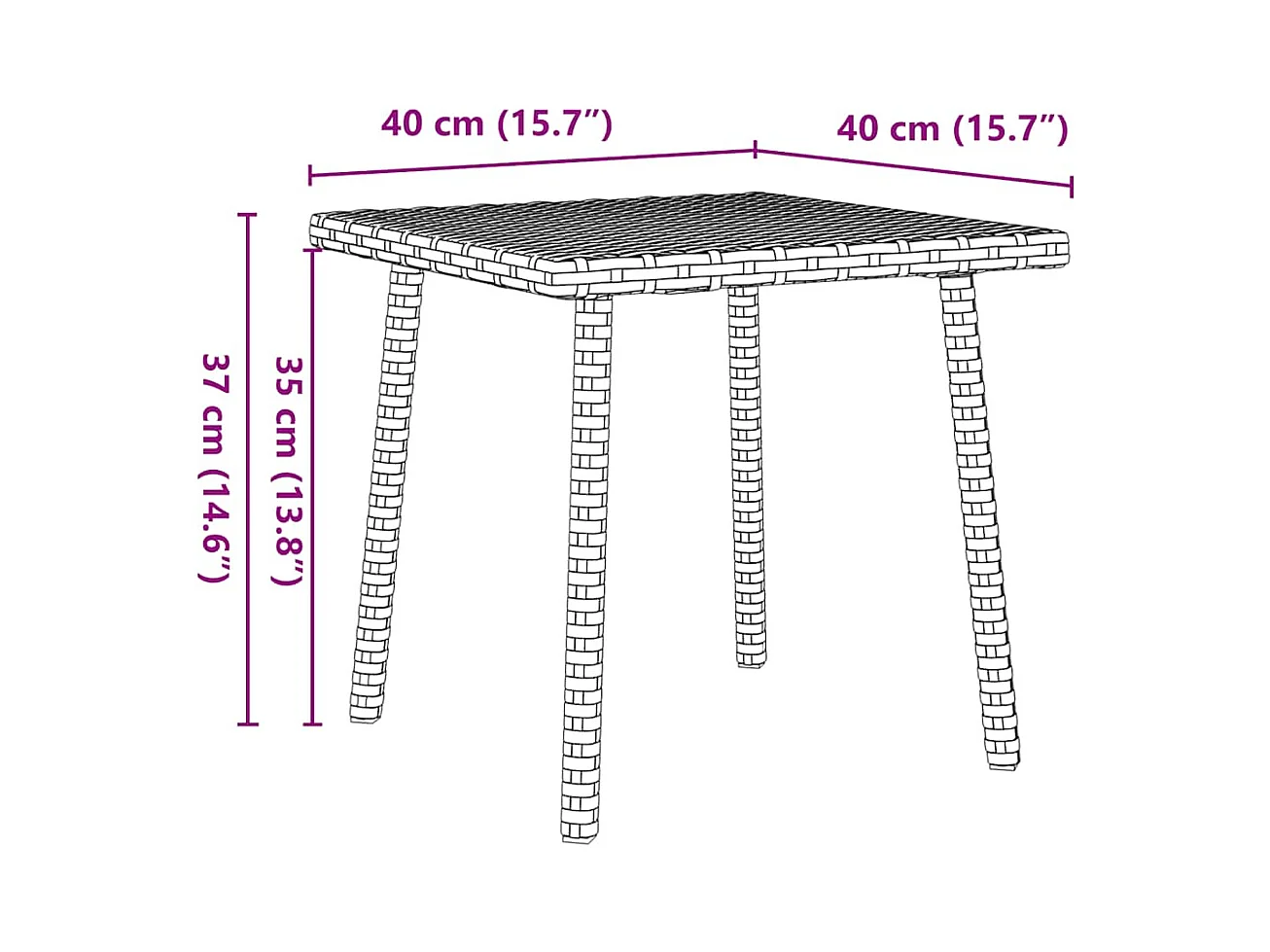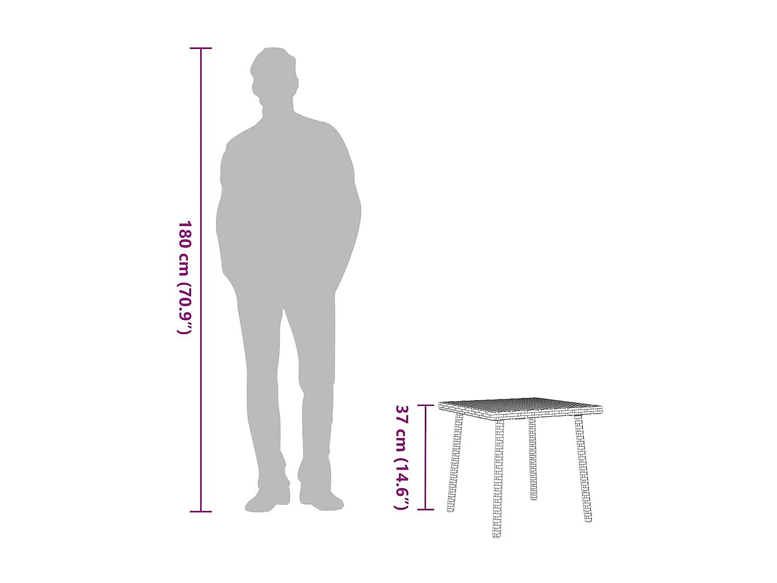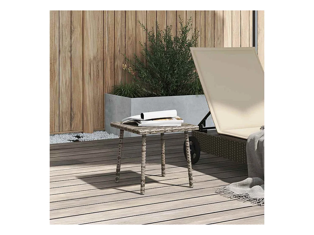 Table basse de jardin rectangulaire gris 40x40x37 cm rotin