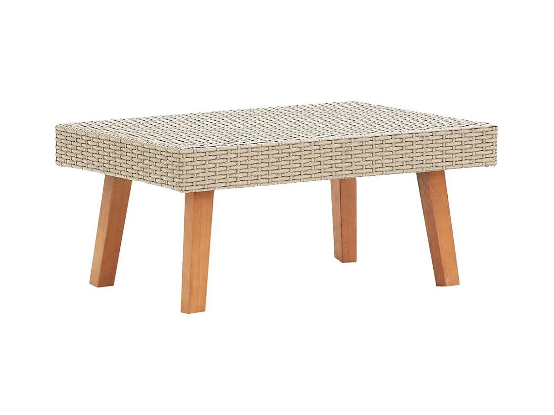 Table de jardin beige 70x70x25 cm résine tressée et bois acacia