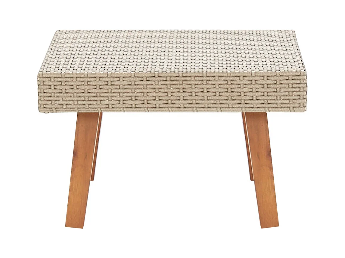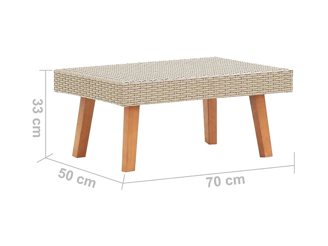 Table de jardin beige 70x38x42 cm résine tressée et bois acacia