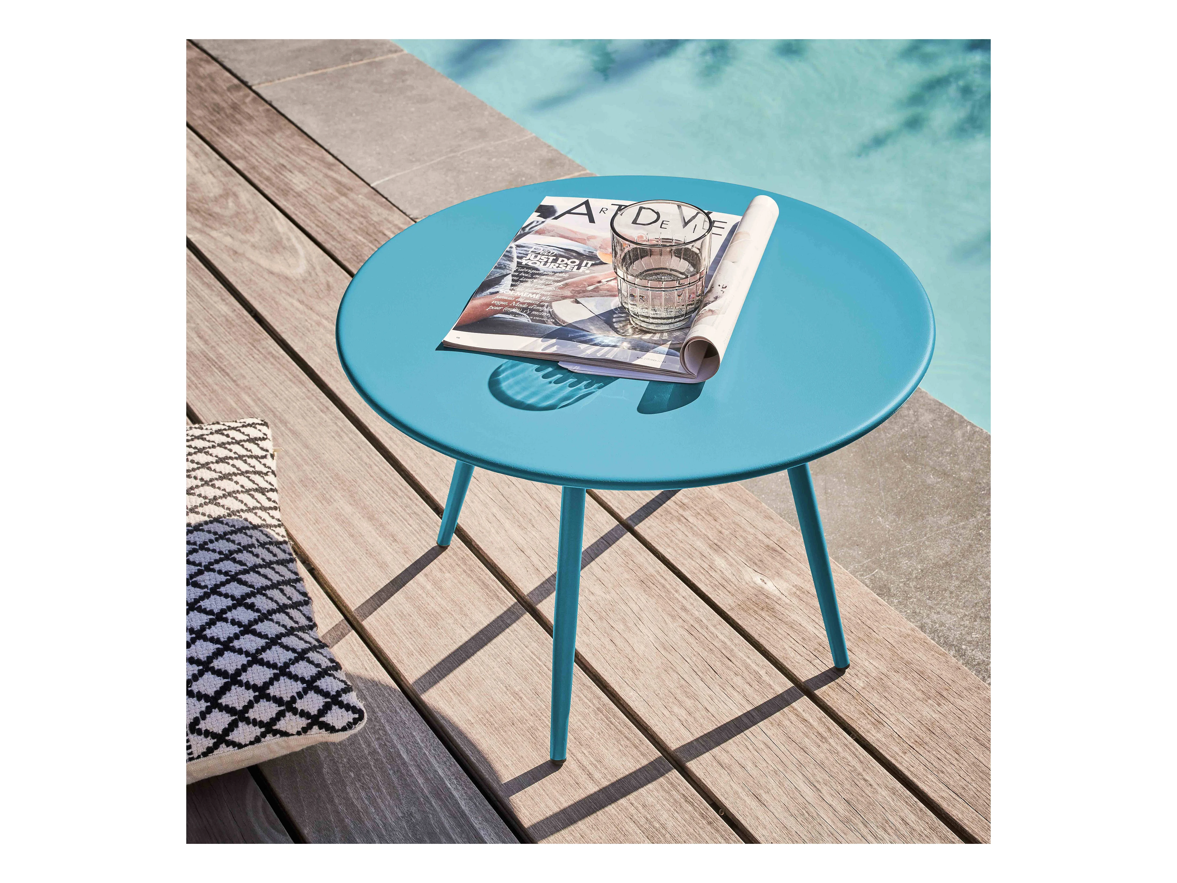 Table basse de jardin ronde en métal bleu 50 cm - Palavas