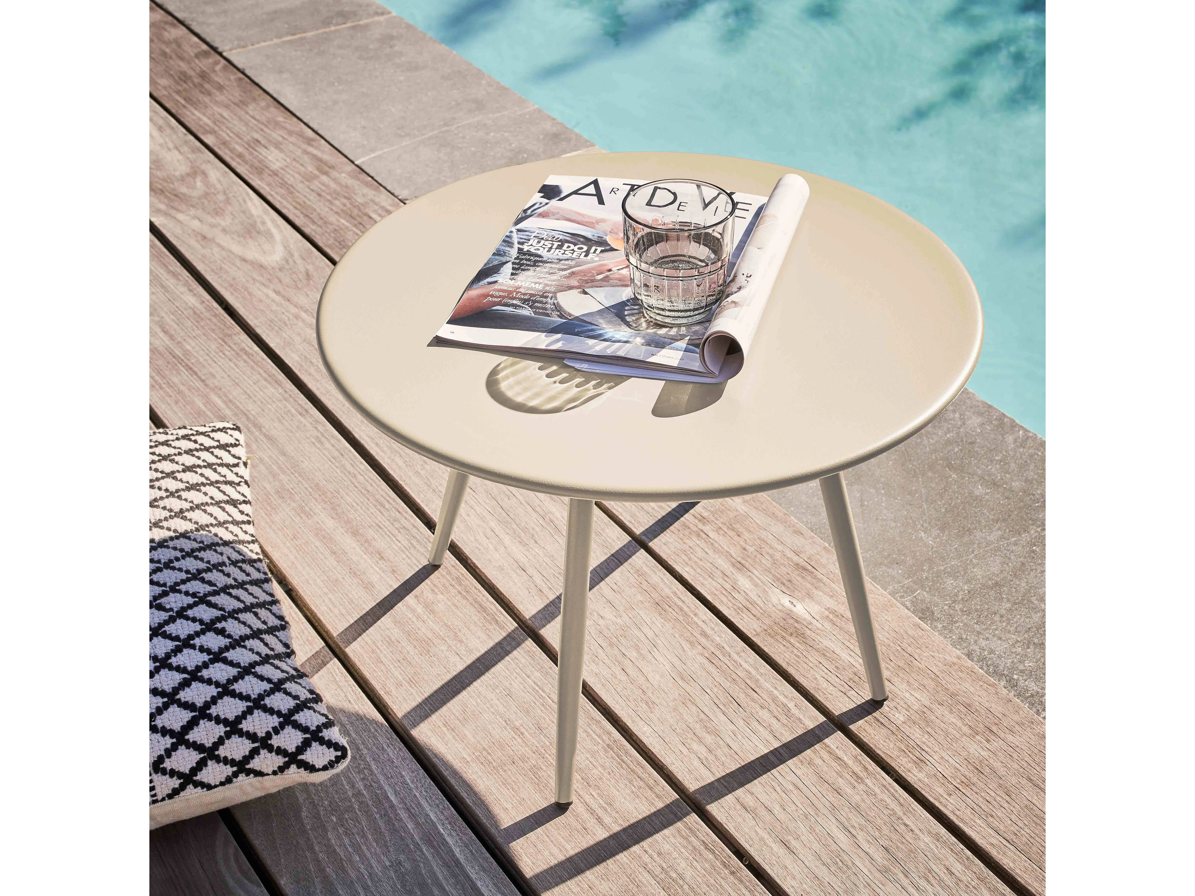 Table basse de jardin ronde en métal ivoire 50 cm - Palavas