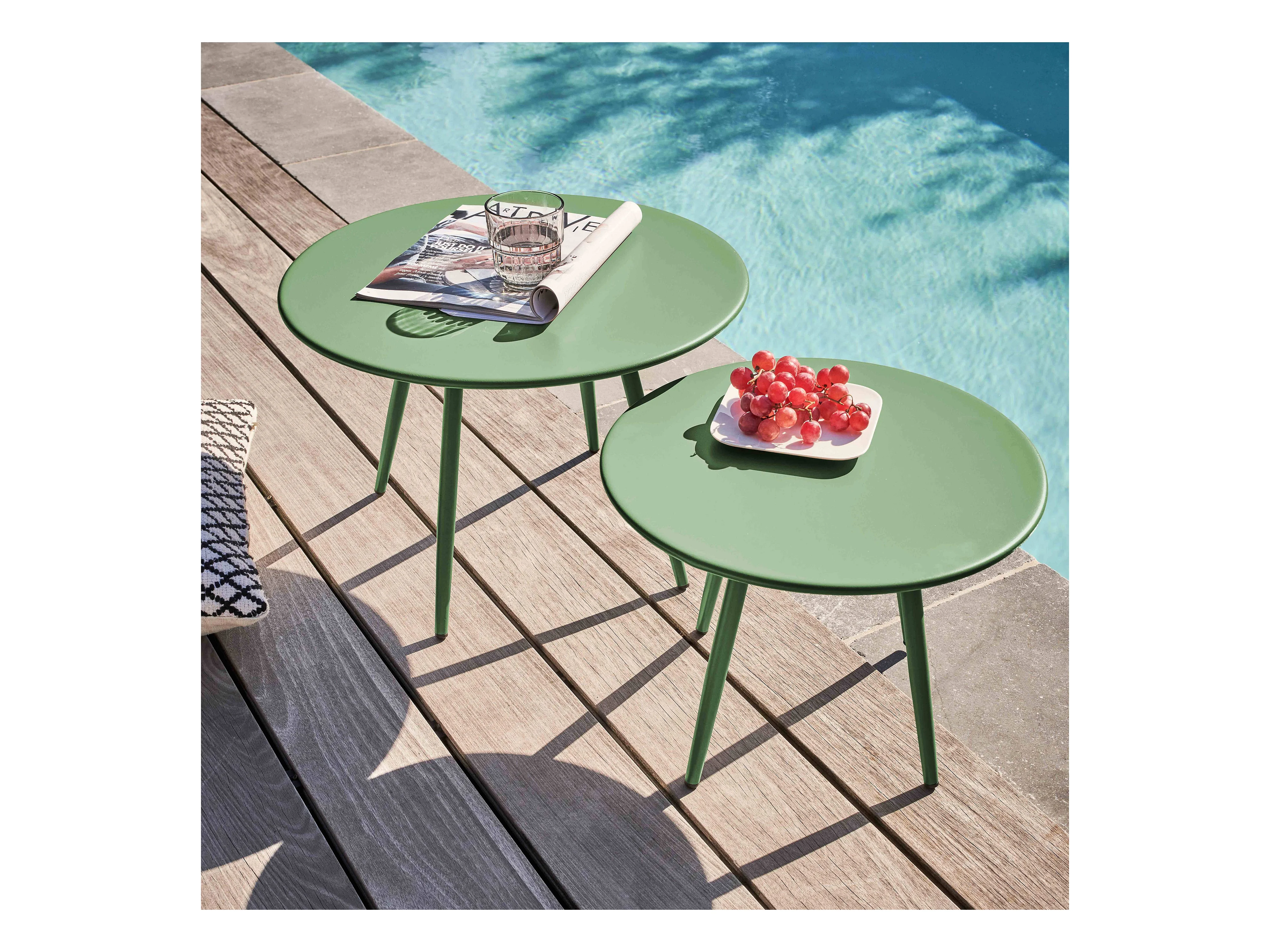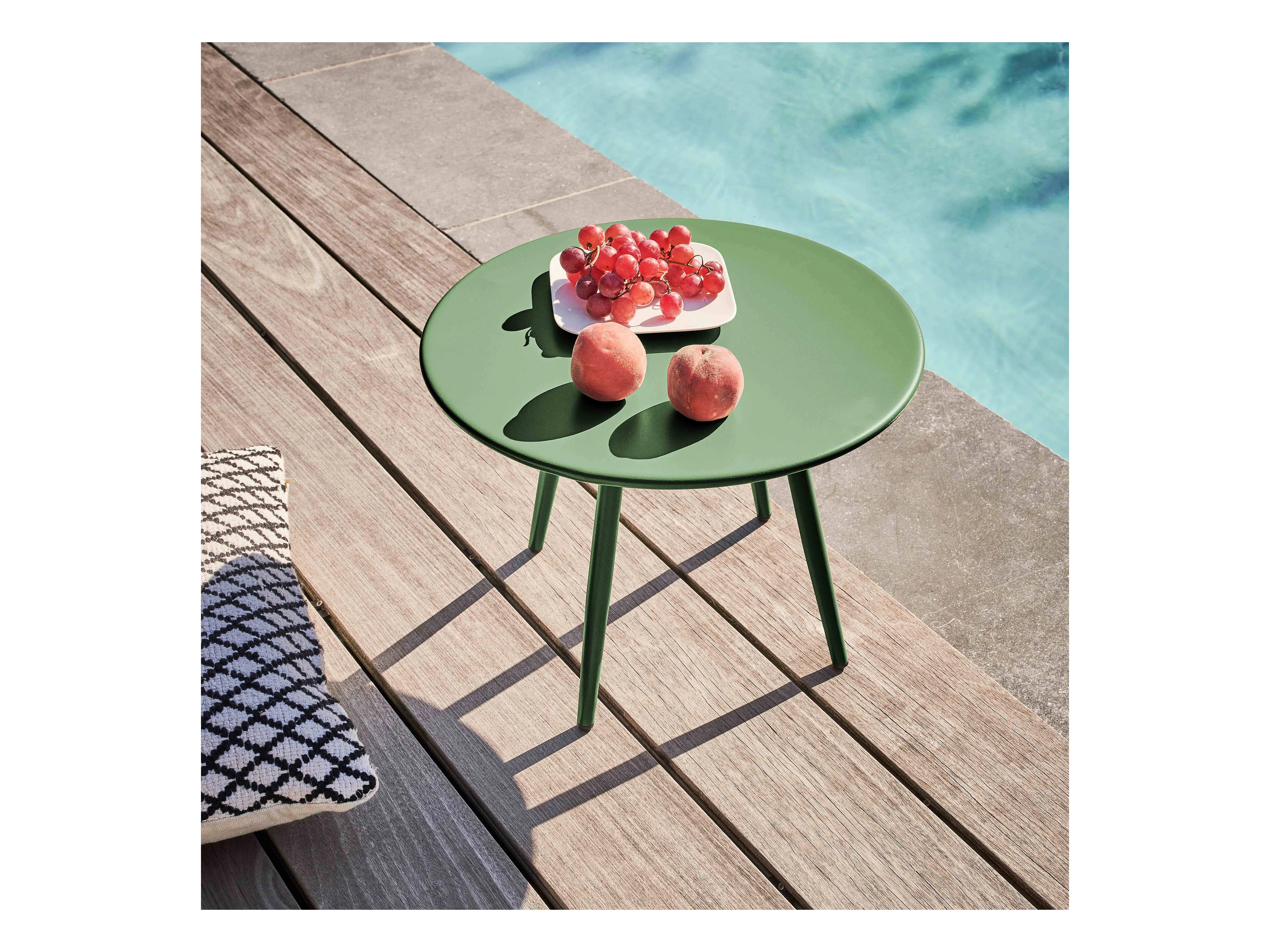 Table basse de jardin ronde en métal vert cactus 40 cm - Palavas