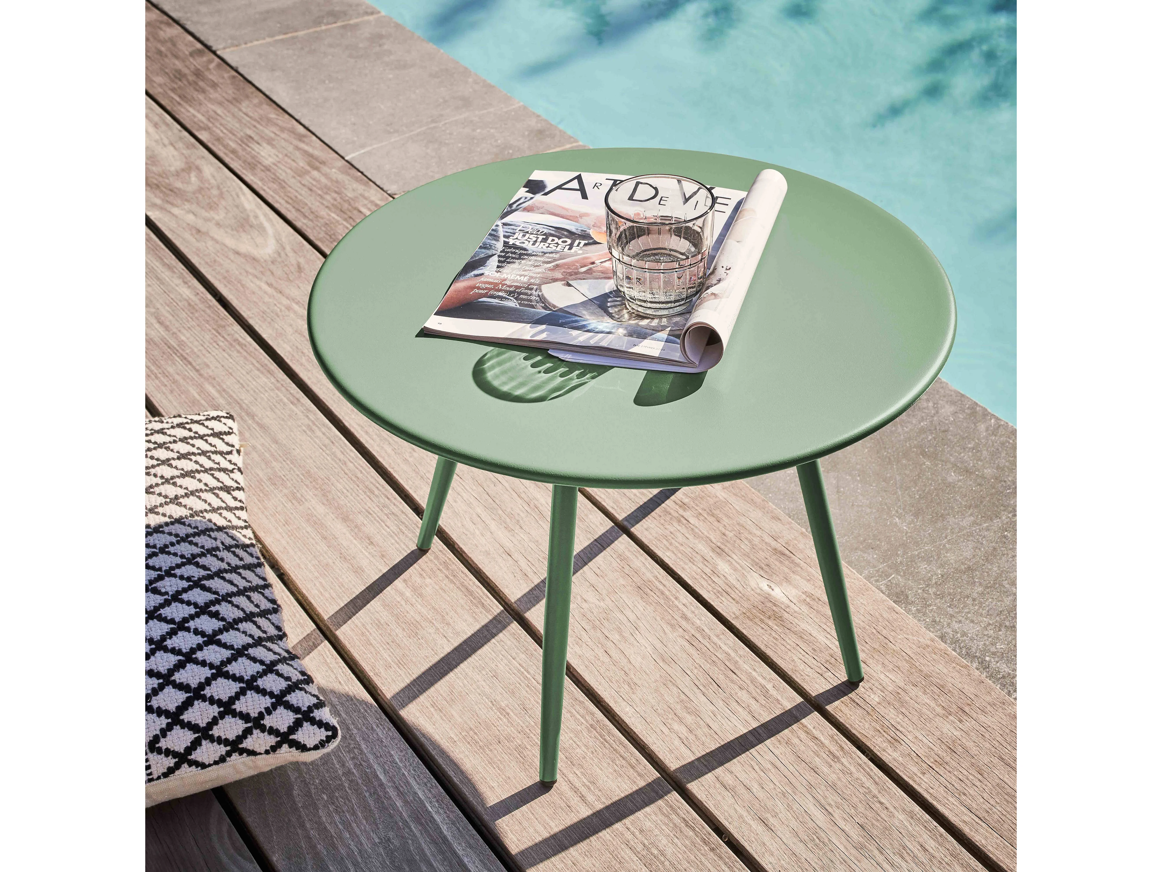 Table basse de jardin ronde en métal vert sauge 50 cm - Palavas