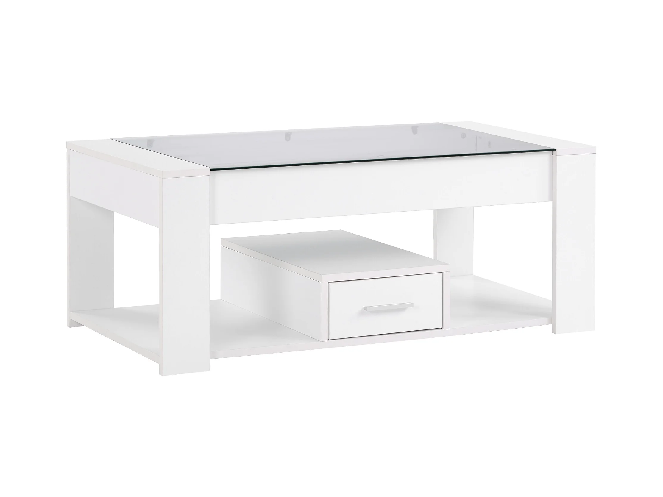 Table basse coulissantes avec 2 tiroirs -100 L x 50 l x 31 H cm - effet en haute brillance - Panneaux de particules - Blanc