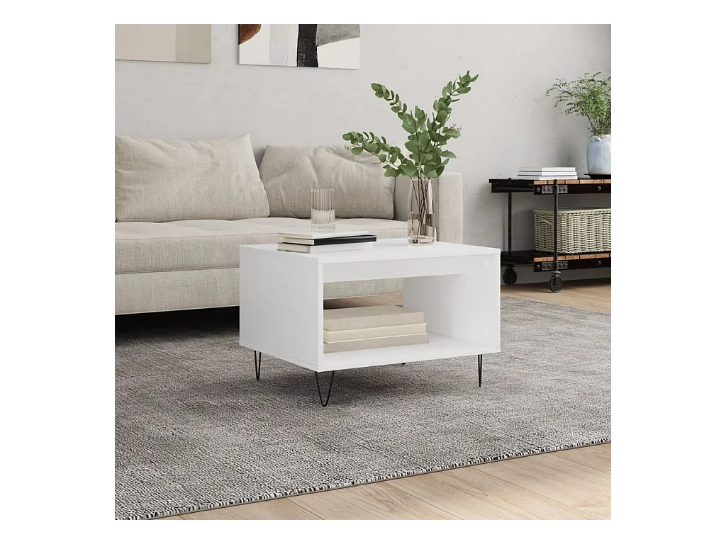 Table basse Blanc brillant 60x50x36,5 cm Bois d'ingénierie OFR64322 BonneVie Meuble