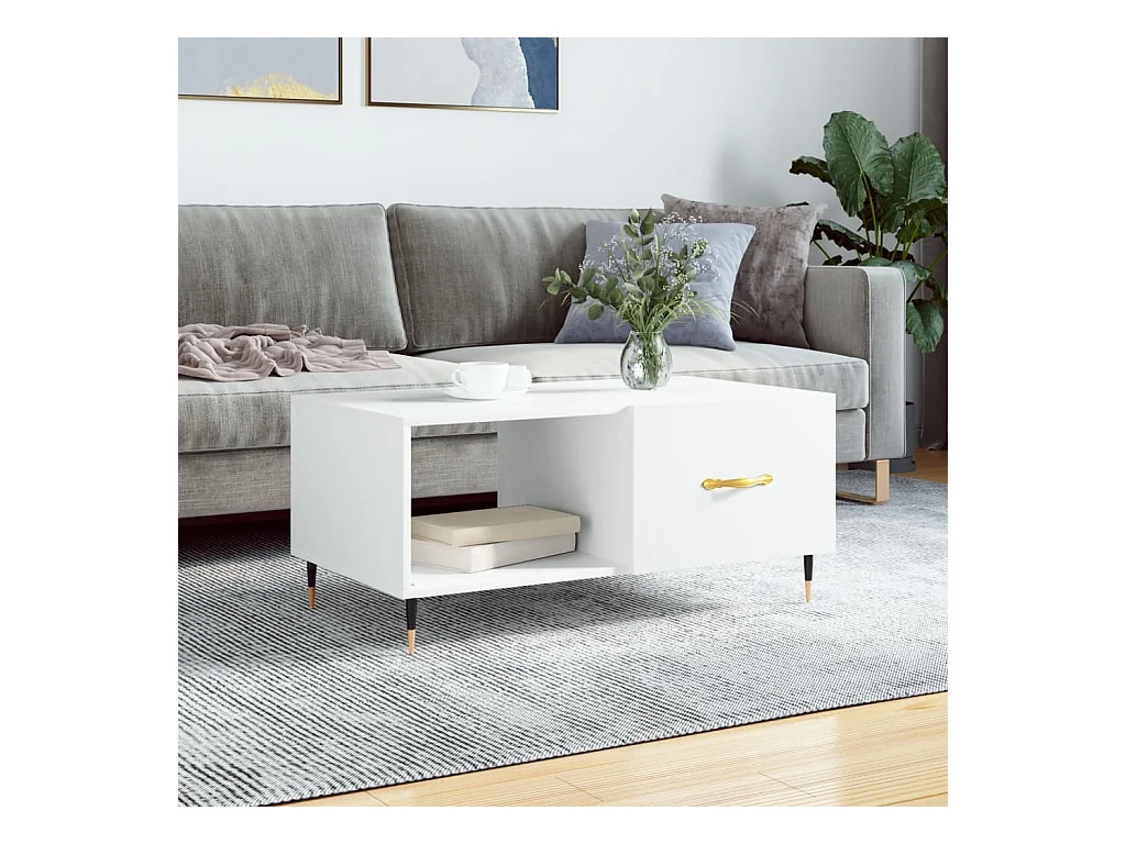 Table basse blanc 90x50x40 cm bois d'ingénierie OFR22499 BonneVie Meuble