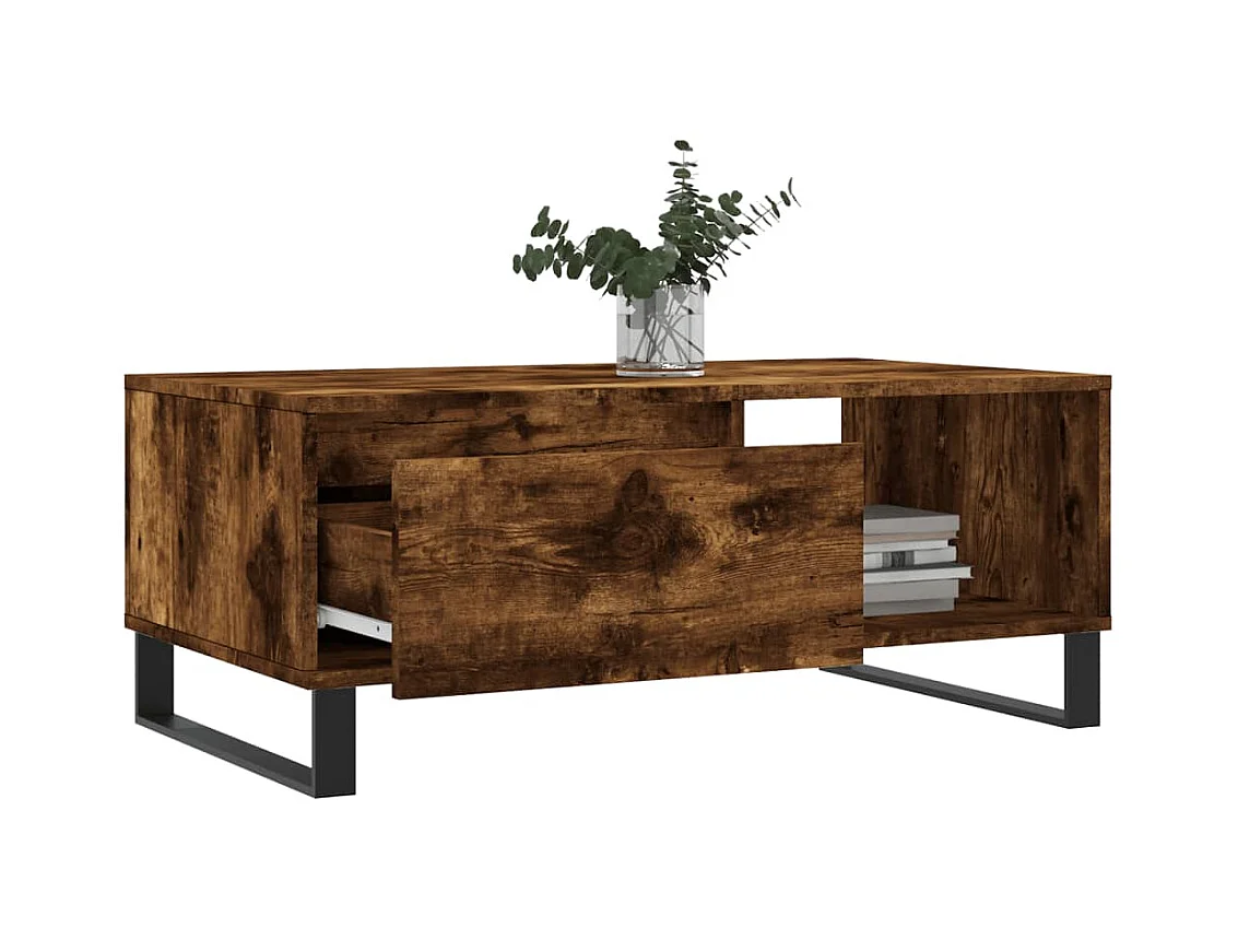 Table basse Chêne fumé 90x50x36,5 cm Bois d'ingénierie OFR38047 BonneVie Meuble