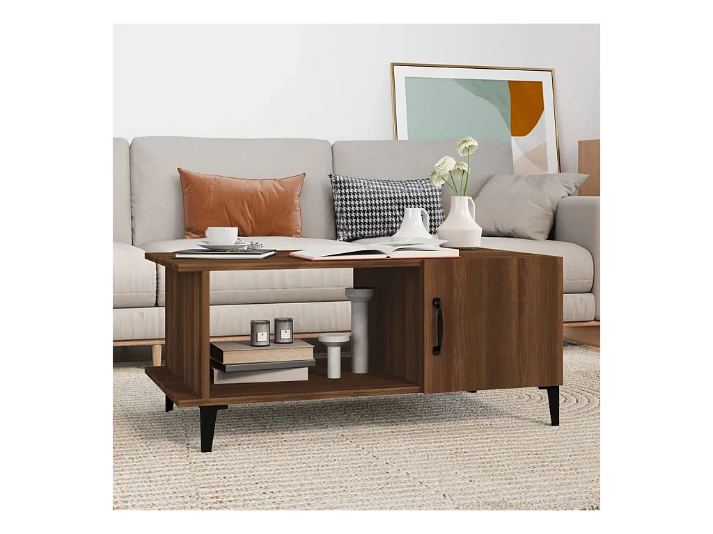 Table basse chêne marron 90x50x40 cm bois d'ingénierie OFR97219 BonneVie Meuble