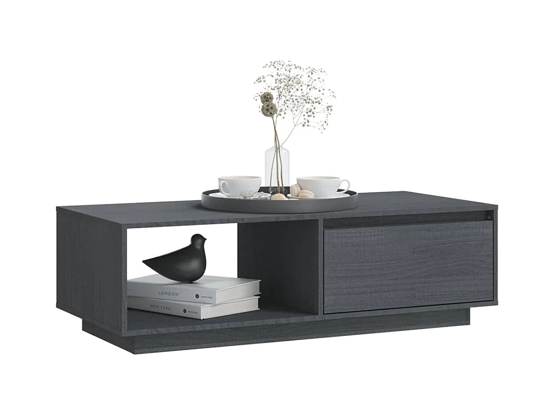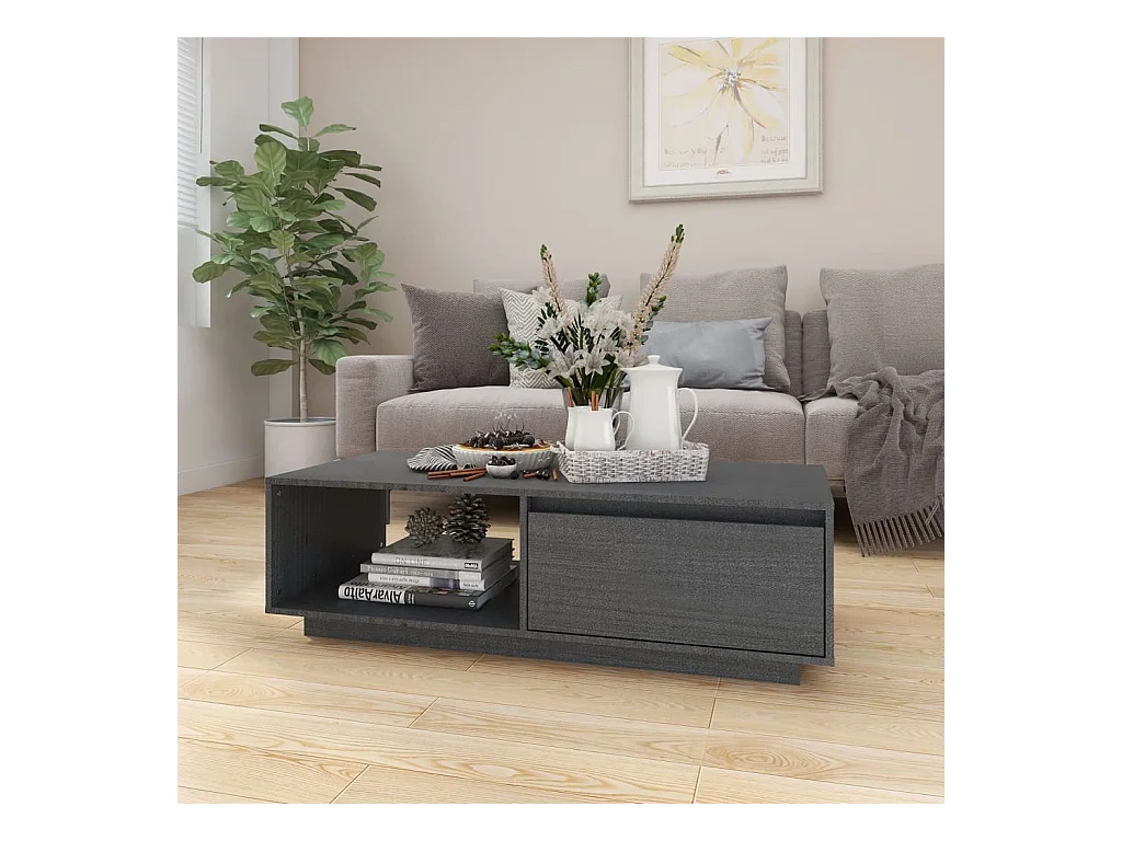 Table basse Gris 110x50x40 cm Bois massif de pin OFR92081 BonneVie Meuble