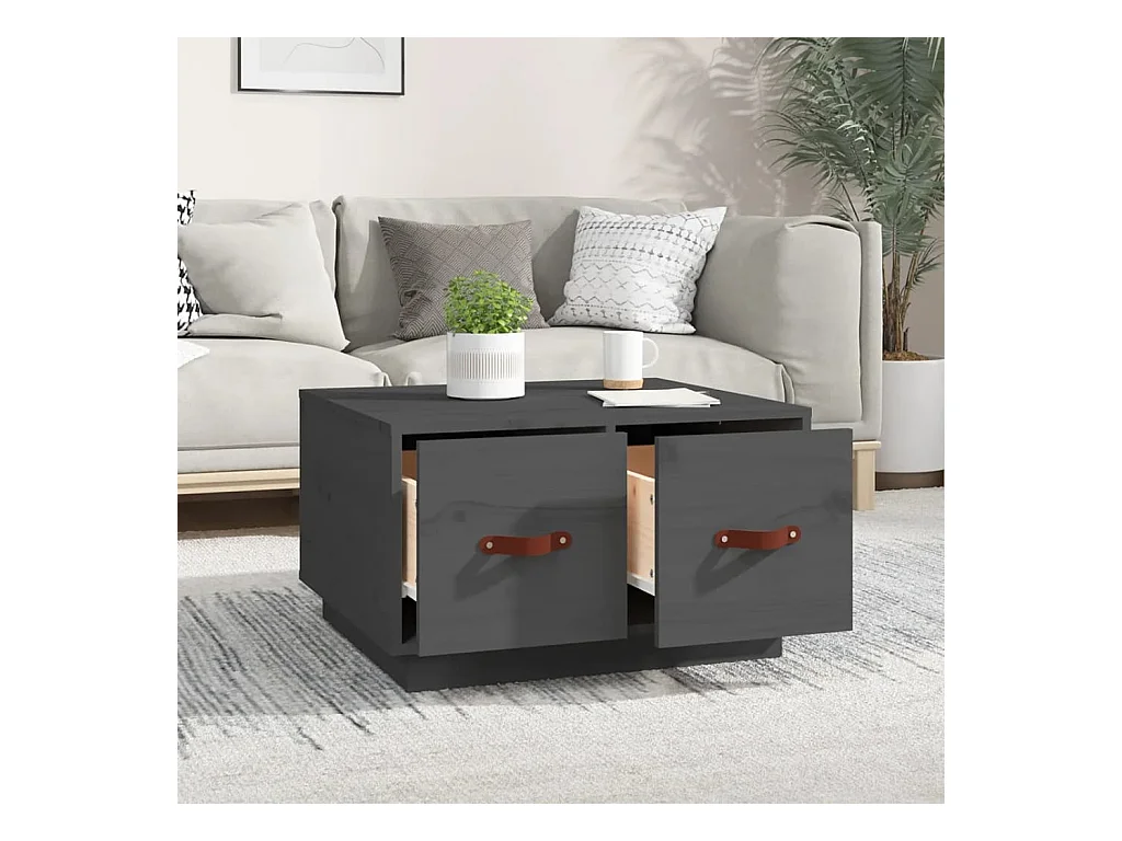 Table basse Gris 60x61x32,5 cm Bois massif de pin OFR98137 BonneVie Meuble