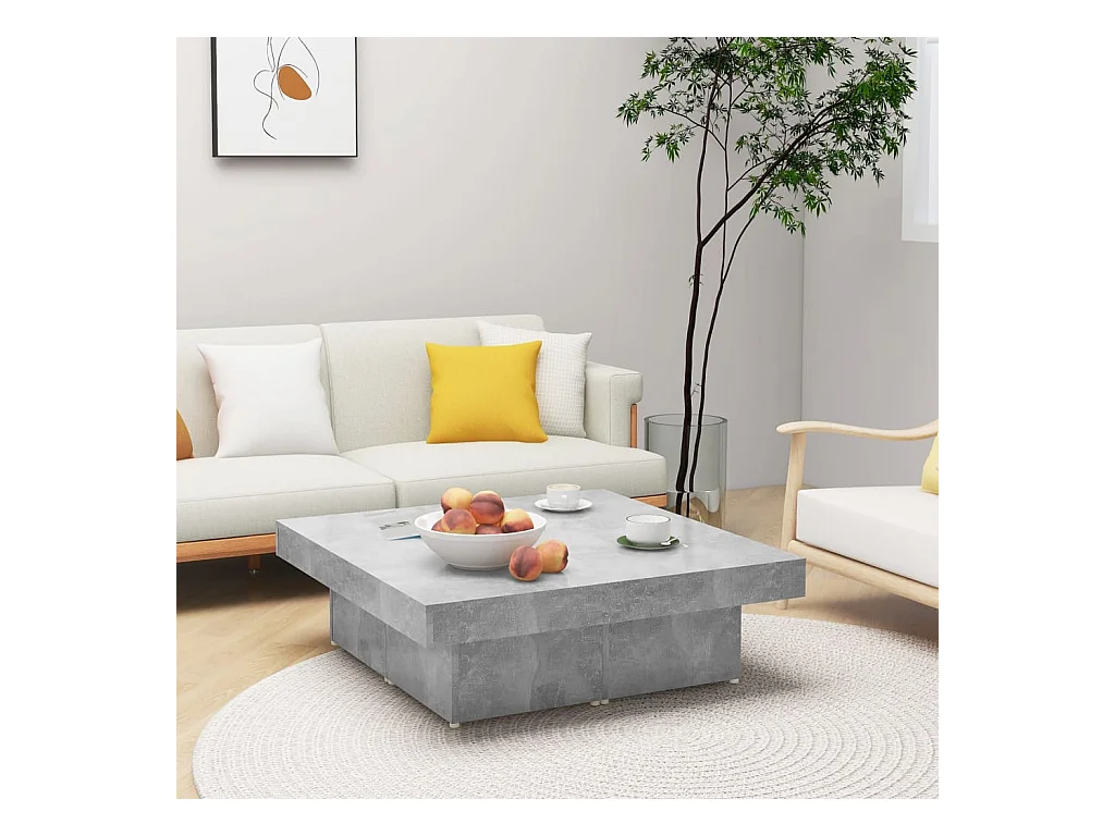 Table basse Gris béton 90x90x28 cm Aggloméré OFR18122 BonneVie Meuble