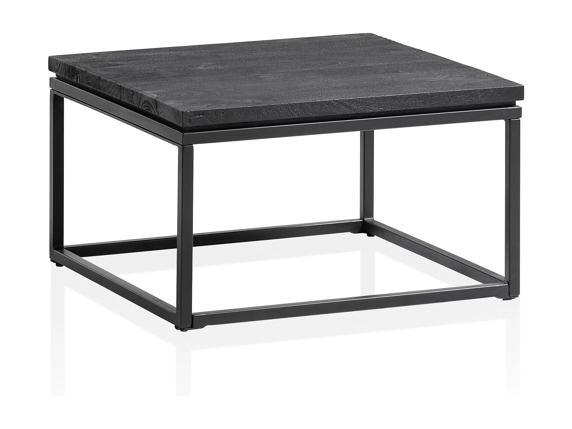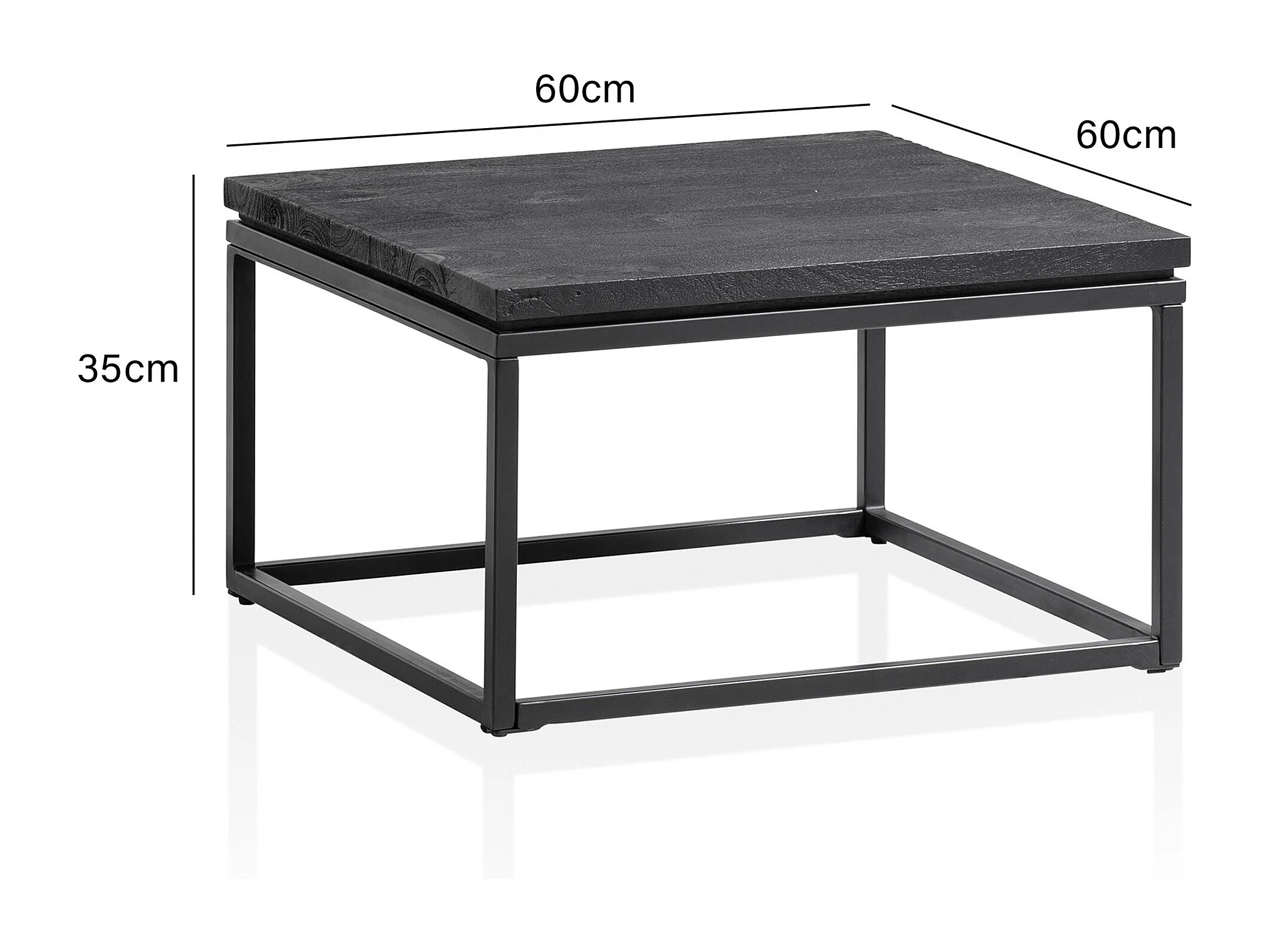 Table Basse de Salon Mango Bois Massif 60x60x35 cm Carrée Noir, Petite Table de Canapé, Design