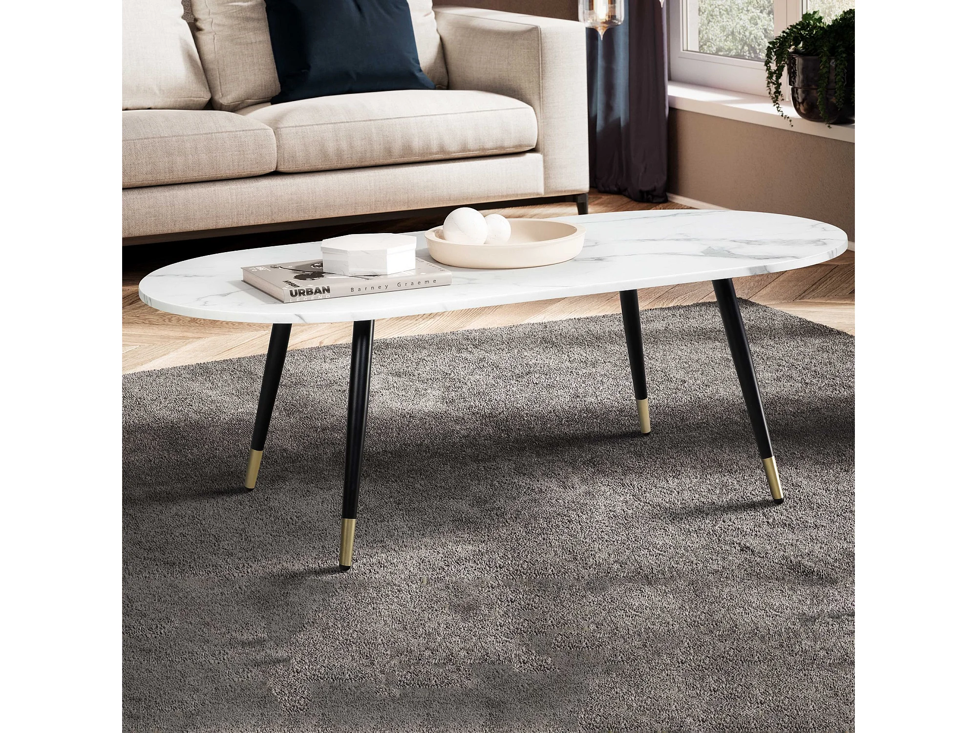 Table Basse de Salon Noir avec Décor Chêne 110x60x43 cm Rectangulaire | Grande Table de Canapé