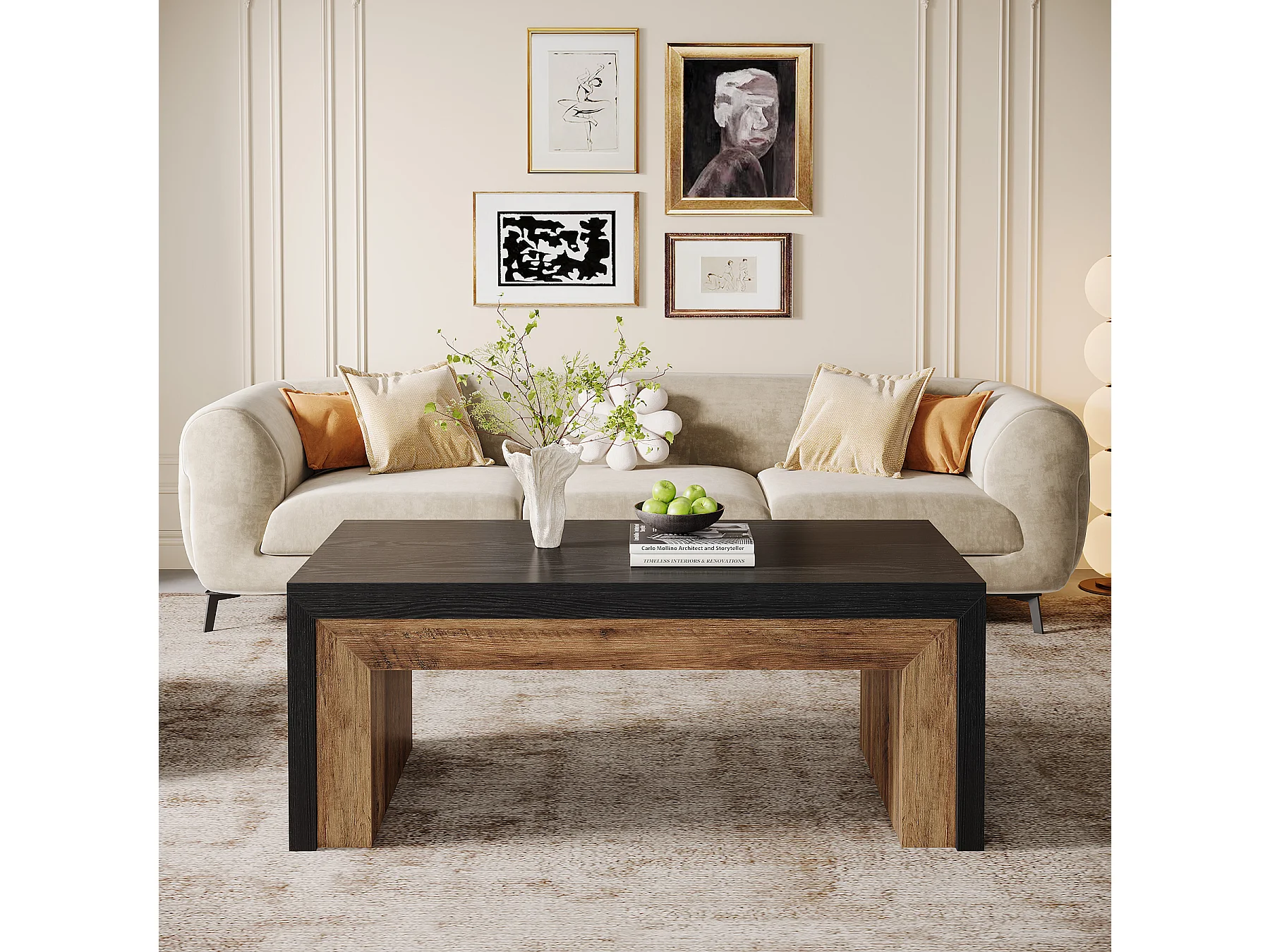 Table basse de style campagnard pour salon, table d'appoint de style milieu du siècle avec base robuste