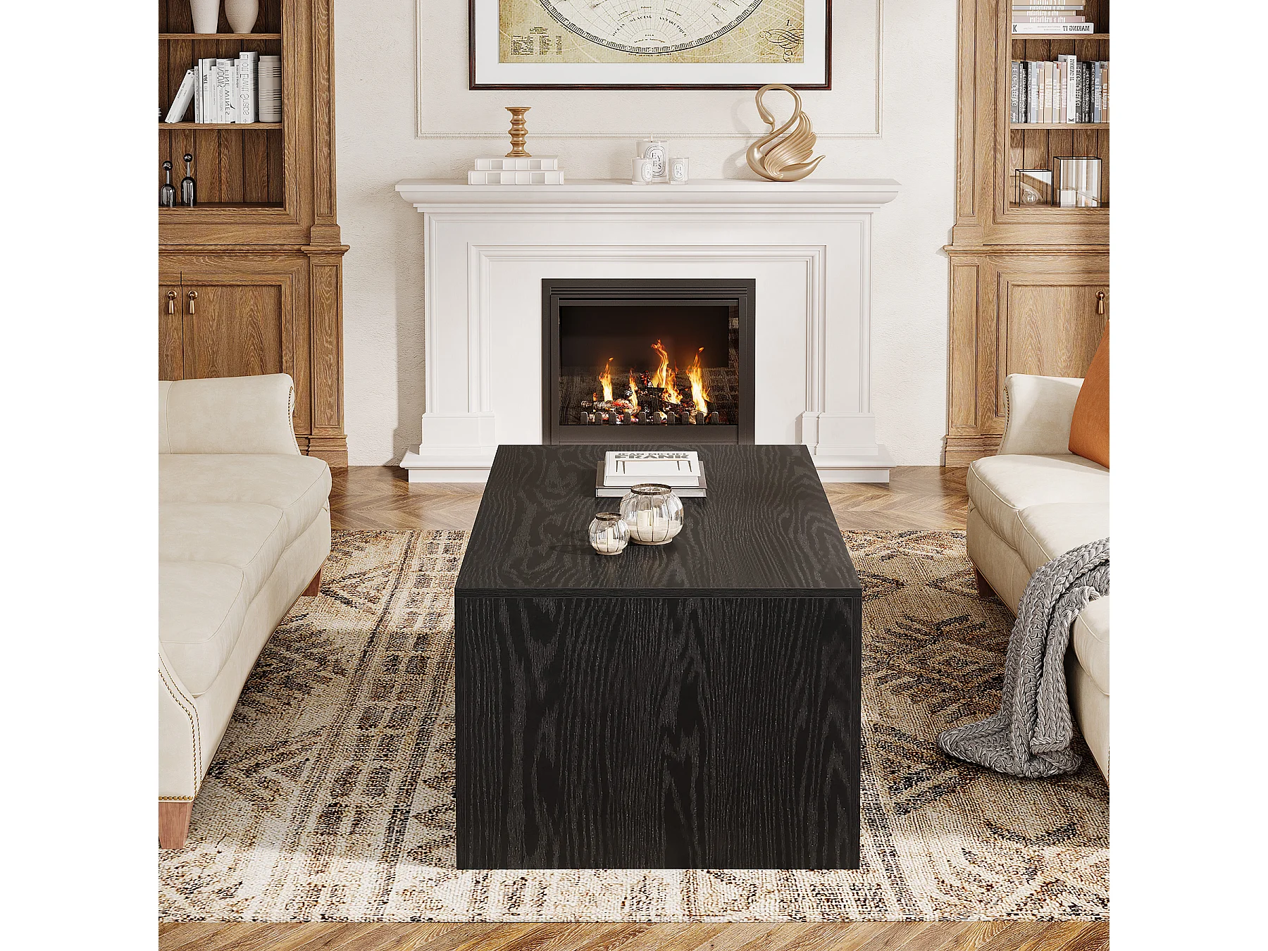 Table basse salon-Table d'appoint en chêne noir 90x60x31 cm en bois d'ingénierie SHL3166