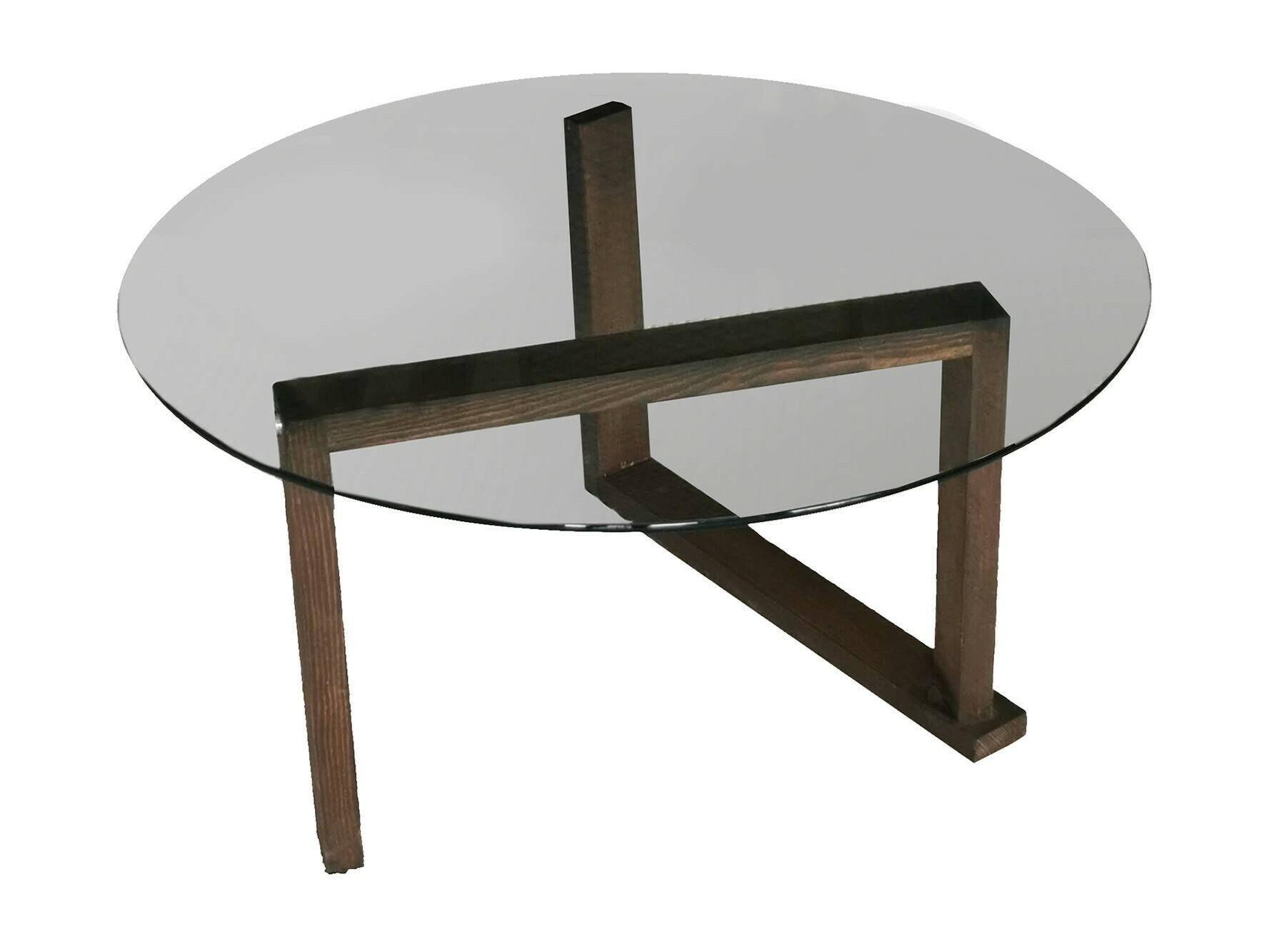 Table basse Psamathe, Table basse, Porte-revues pour canapé, Etagère de salon, 80x80h40 cm, Noyer et Fumé