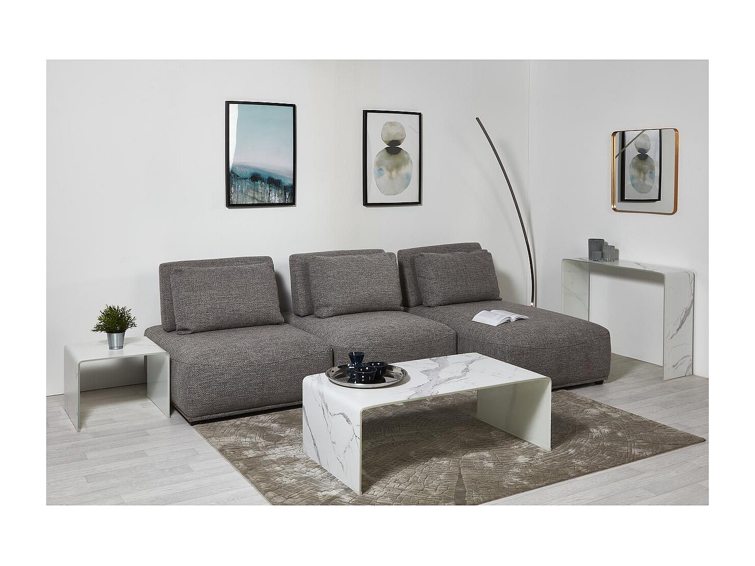 Table basse 2 plateaux verre et marbre blanc pieds métal doré 111cm
