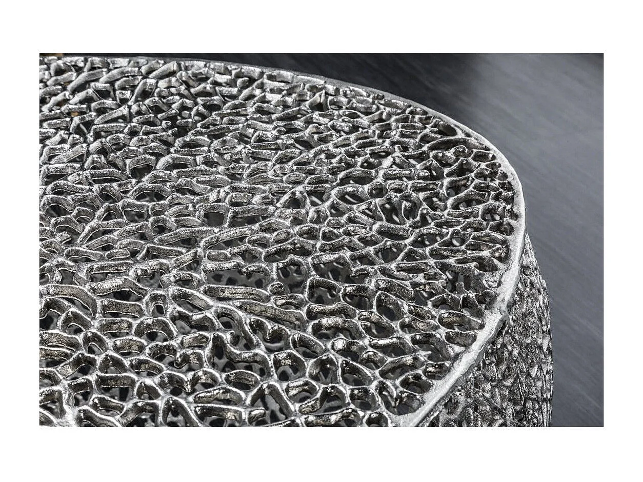 Table basse design METRIX 122x69 cm – Aluminium argenté à motifs arrondis