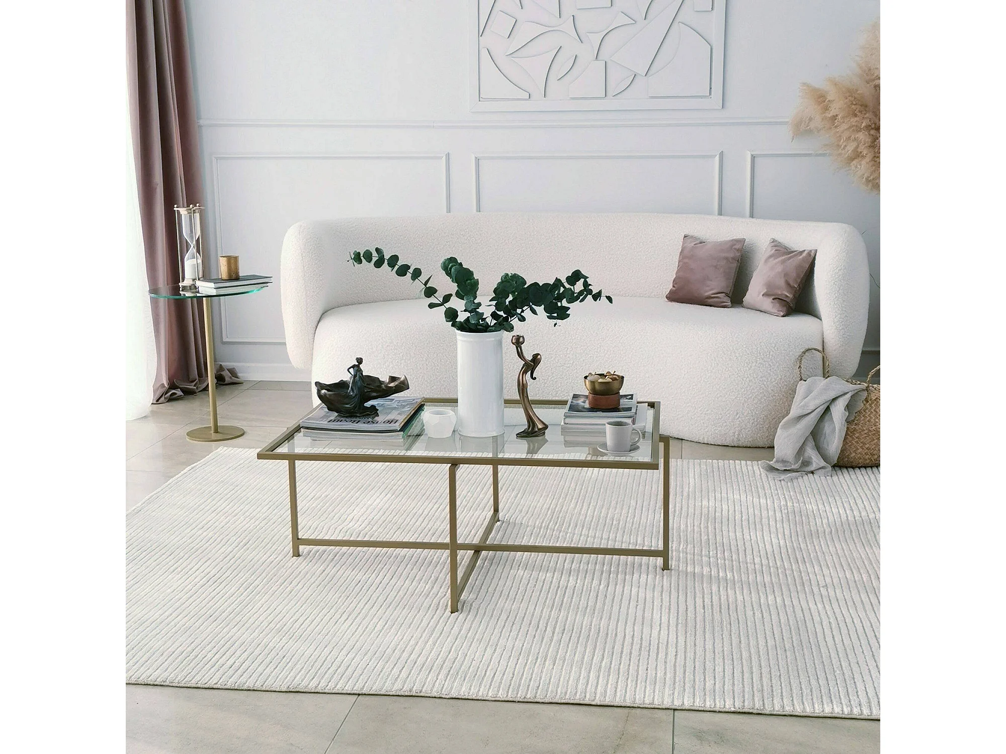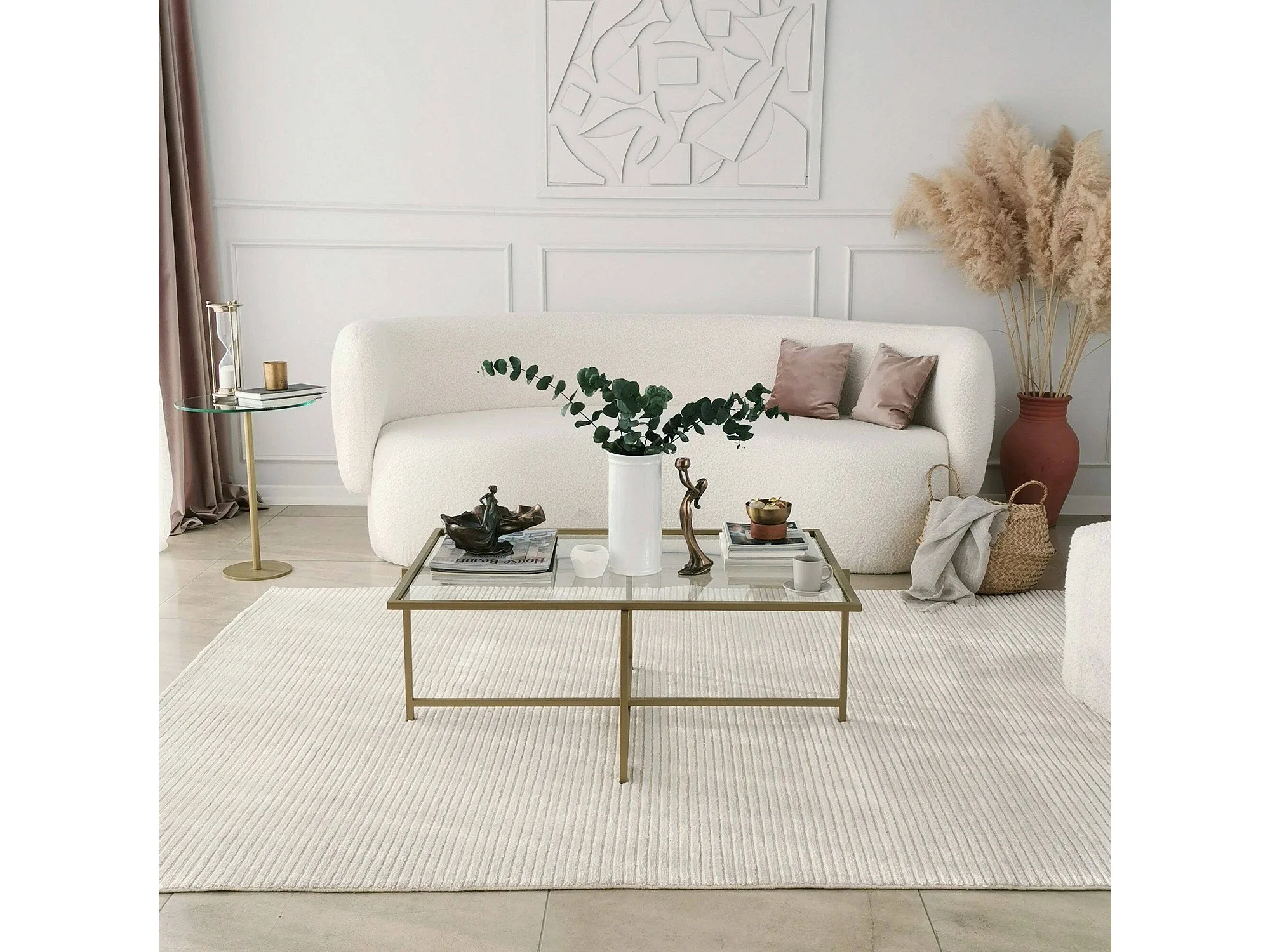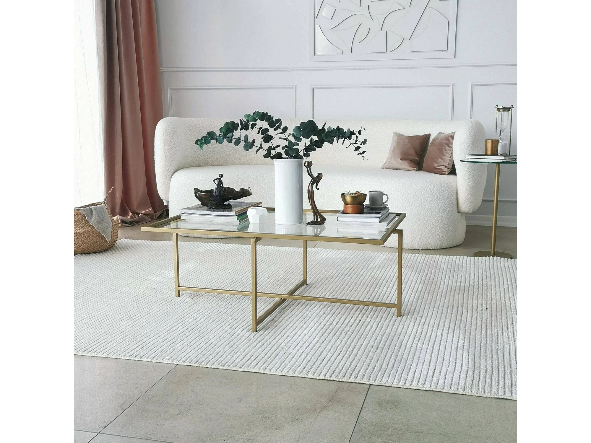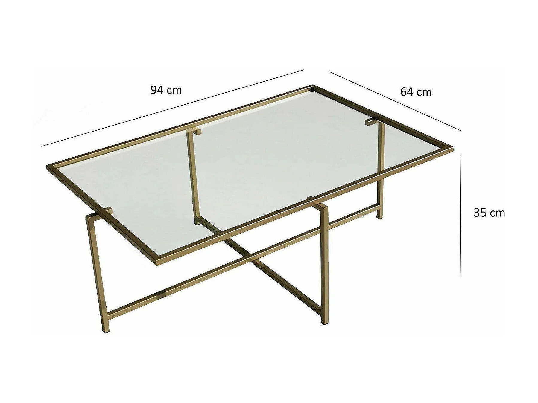 Table basse Dheneb, Table basse, Porte-revues pour canapé, Etagère de salon, 94x64h35 cm, Or