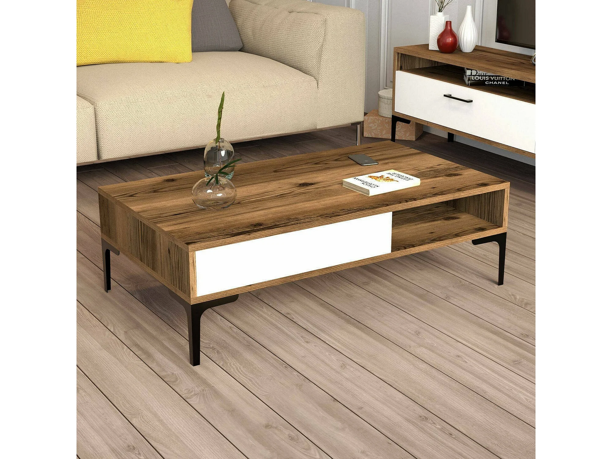 Table basse Diadem, Table basse, Porte-revues pour canapé, Etagère de salon, 105x60h33 cm, Noyer et Blanc