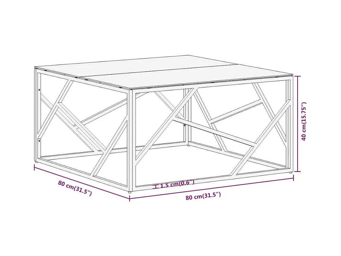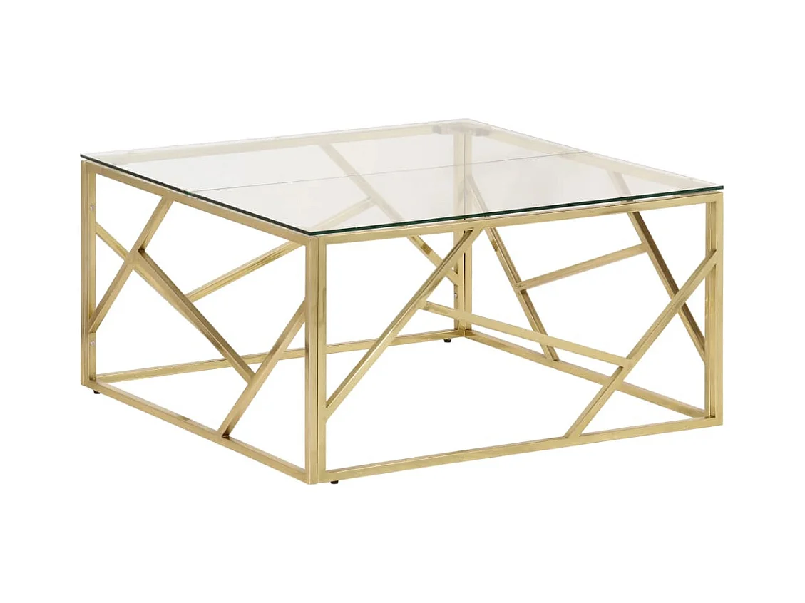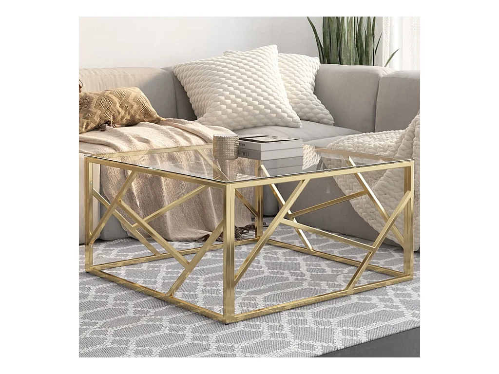 Table basse doré 80x80x40 cm acier inoxydable et verre