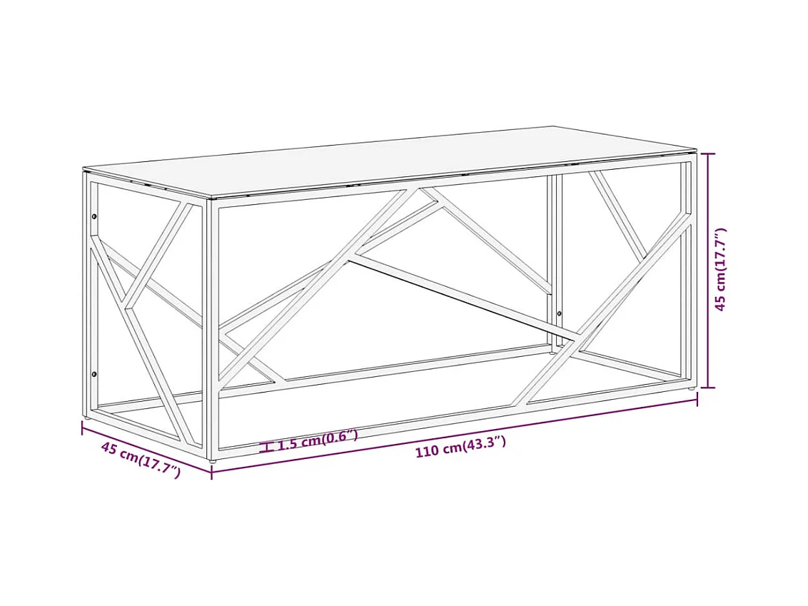 Table basse 110x45x45 cm acier inoxydable et verre OFR85380 BonneVie Meuble