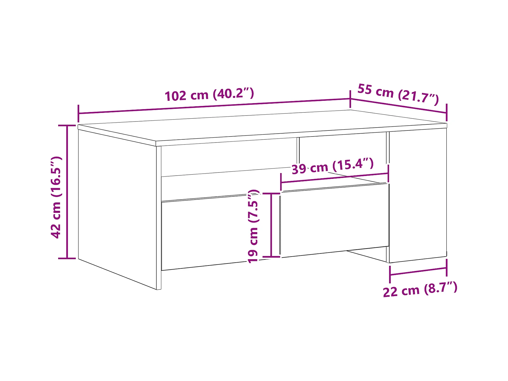 Table basse chêne sonoma 102x55x42 cm bois d'ingénierie FR42410