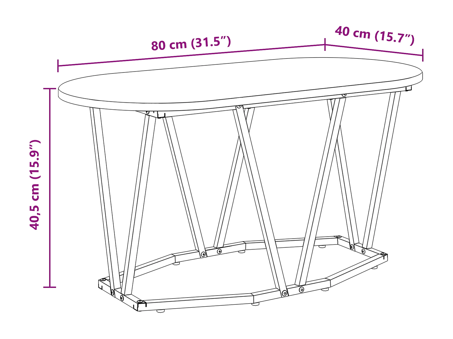 Table basse en chêne Sonoma 80x40x40,5 cm en bois d'ingénierie et métal