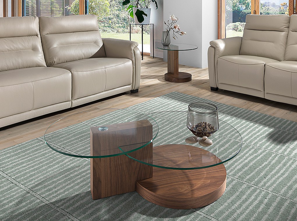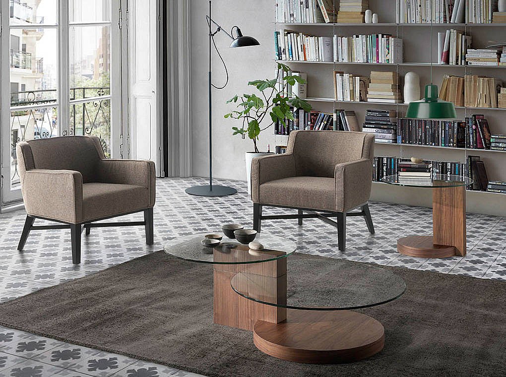 Table basse en bois de noyer et verre 2055 ANGEL CERDA