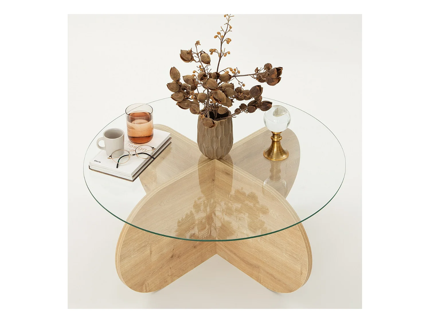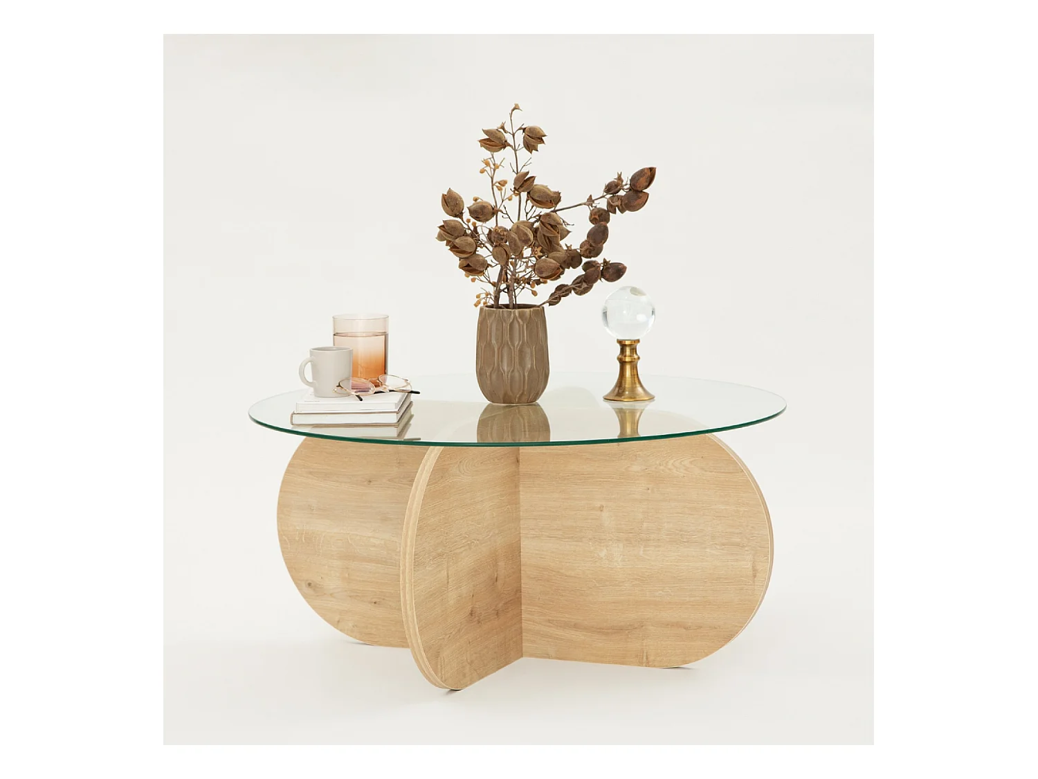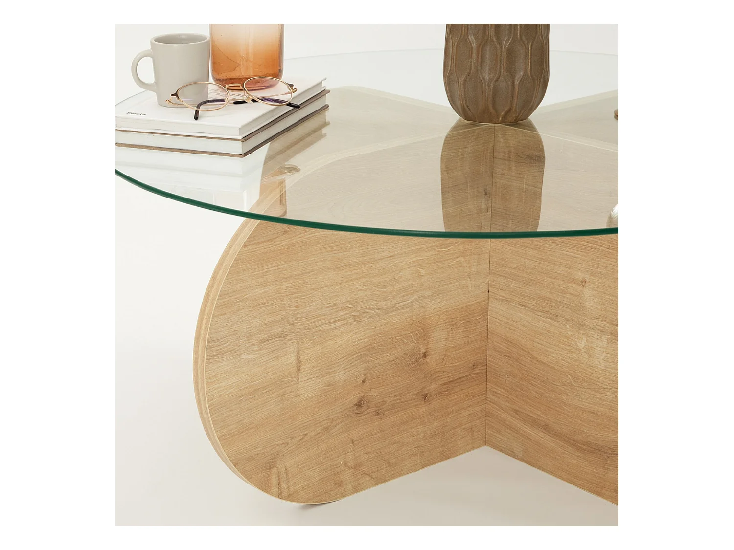 Table basse en bois et plateau en verre RIBE