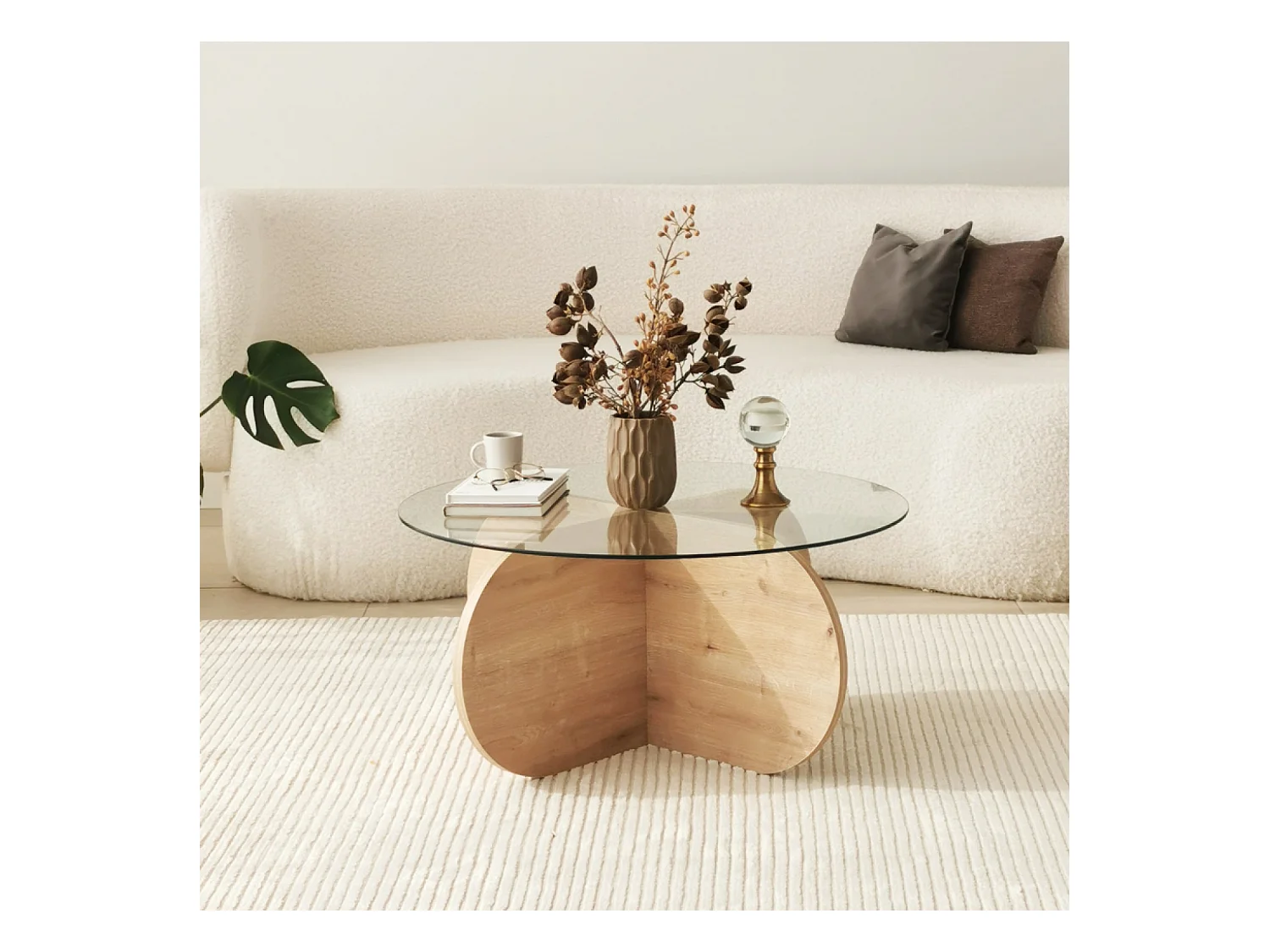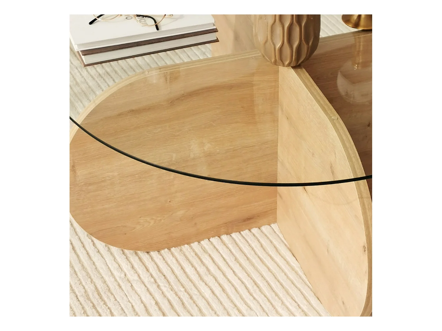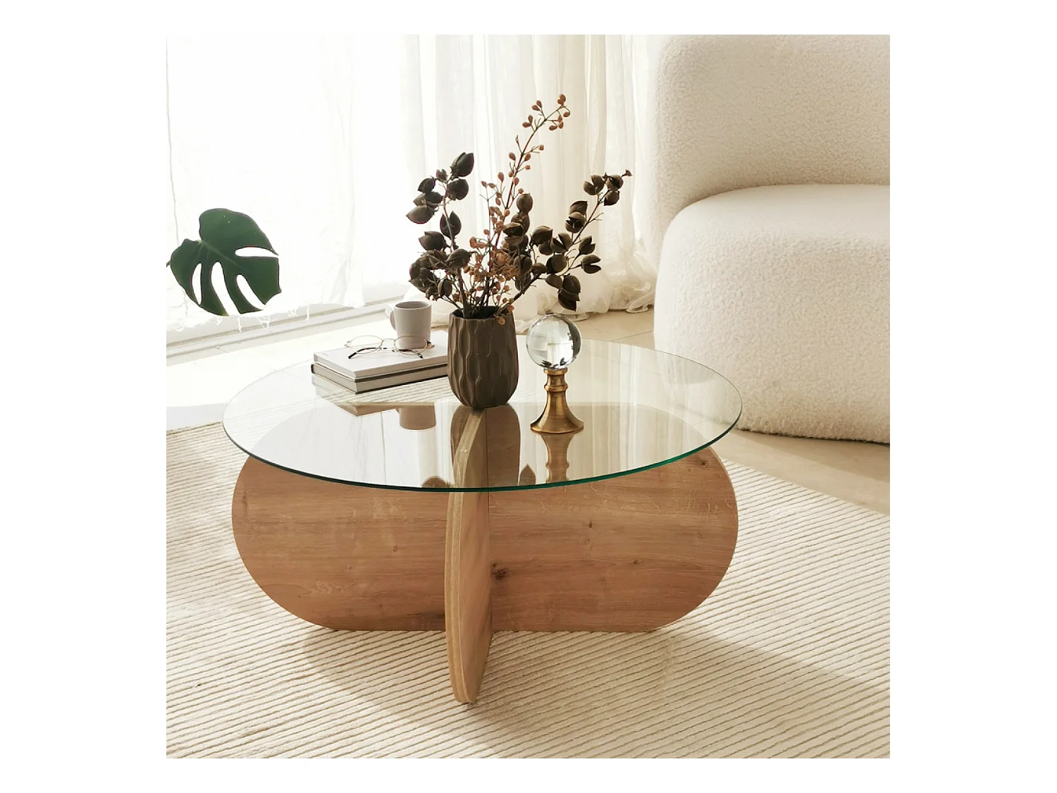 Table basse en bois et plateau en verre RIBE