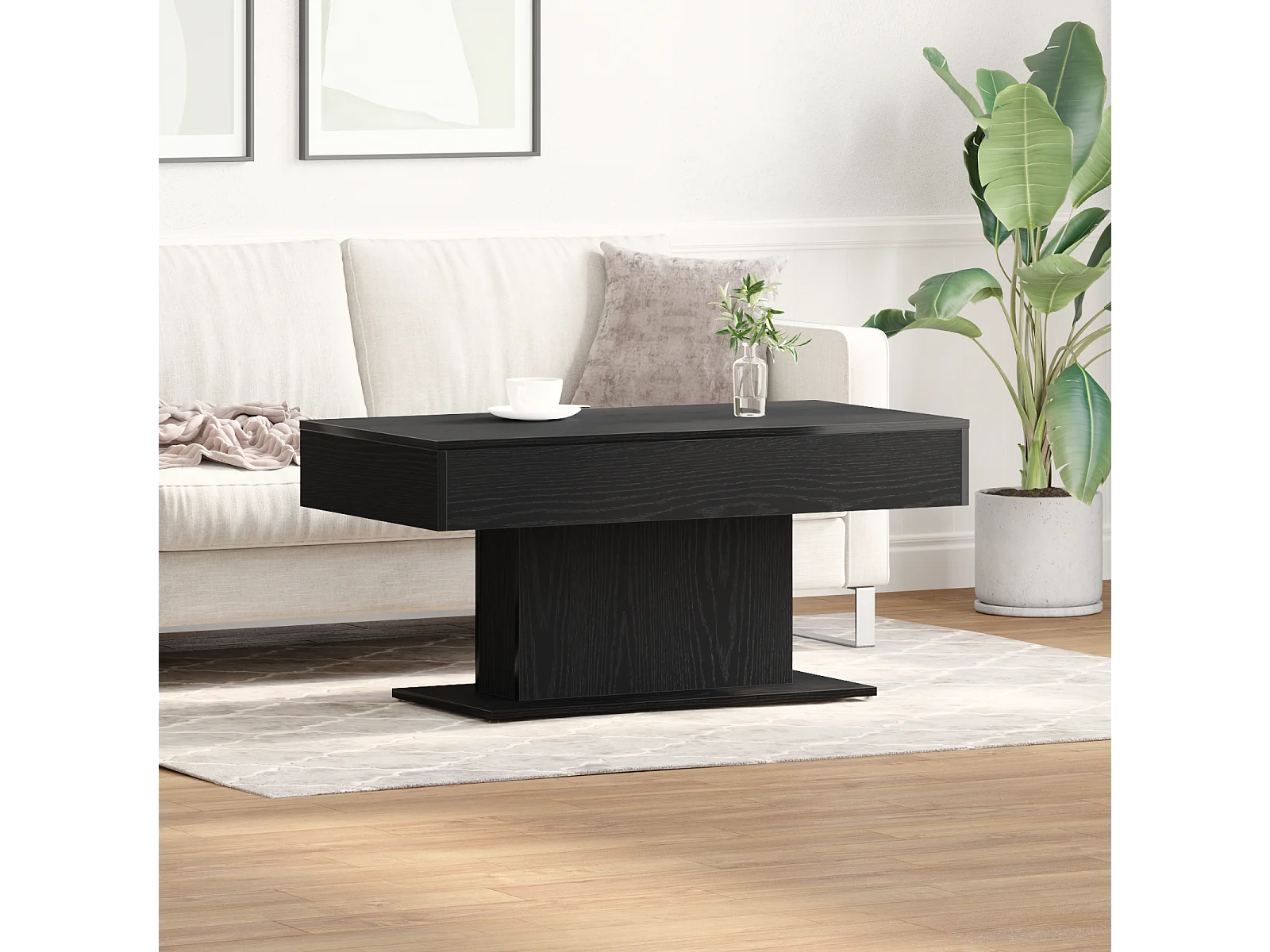 Table basse en bois noir 96x50x45 cm, en bois d'ingénierie