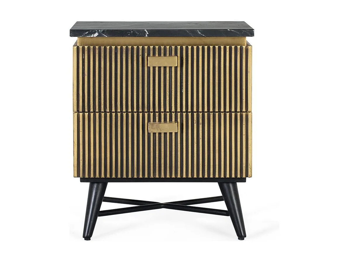 Table de chevet avec front en laiton 40x30x50cm Manguier massif KEFWE76324