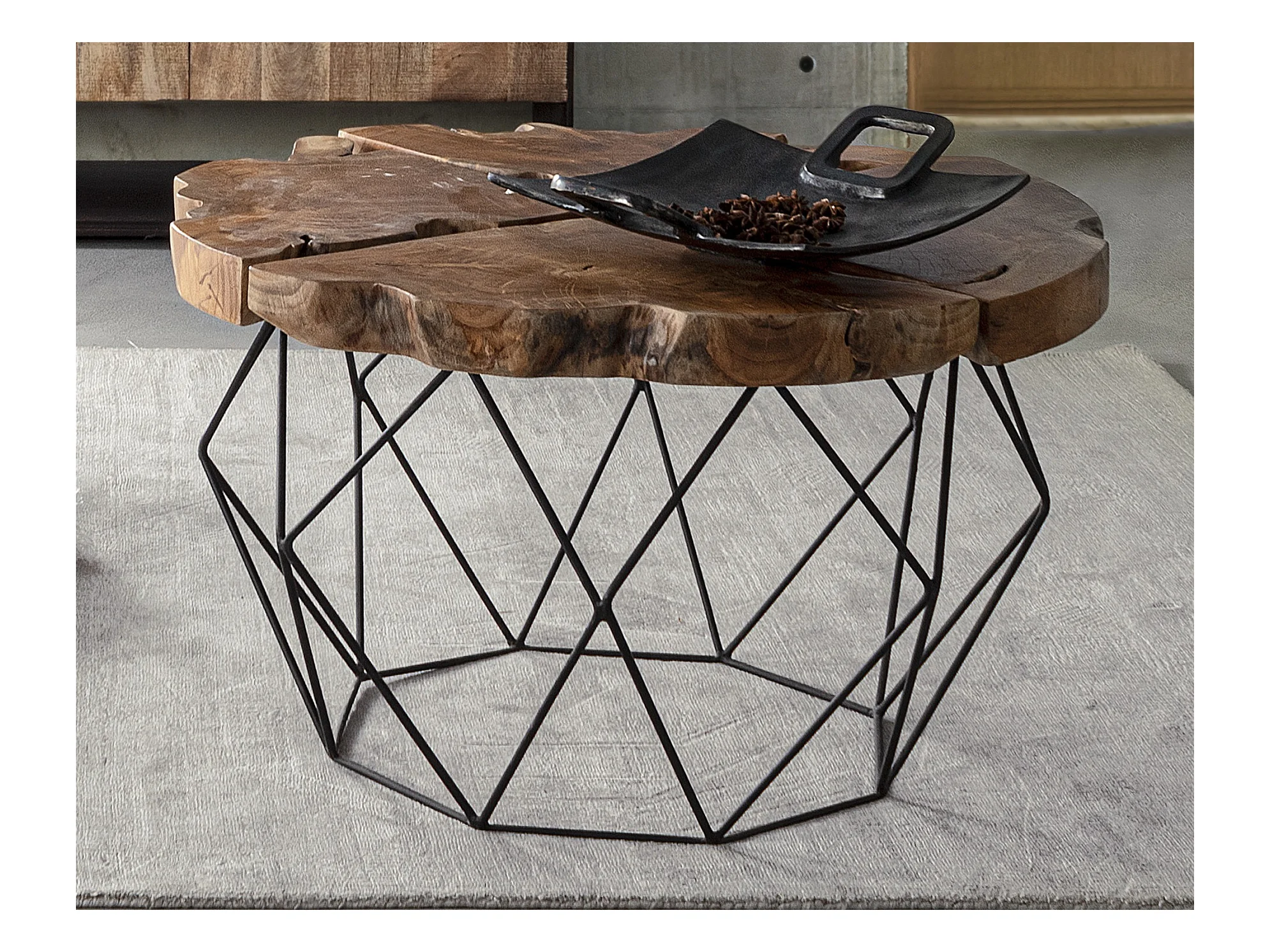 Table basse en bois teck et pieds acier noir Ada L 80cm