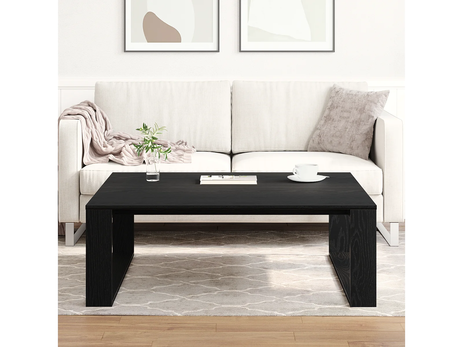 Table basse noir 100x100x40 cm bois d'ingénierie