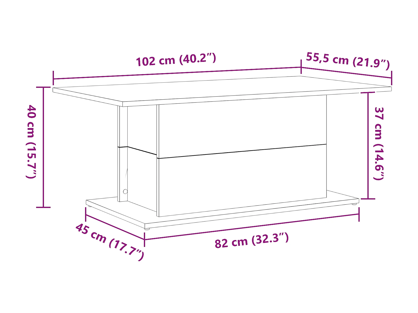 Table basse noir 102x55,5x40 cm bois d'ingénierie