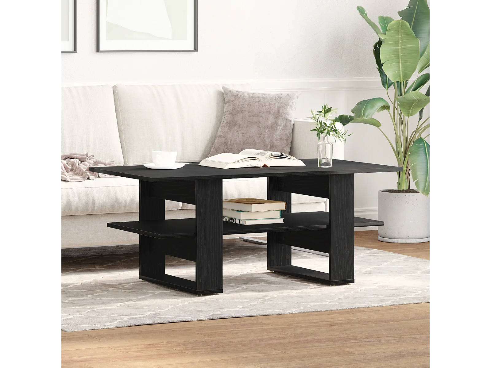 Table basse noir 102x55x42 cm bois d'ingénierie