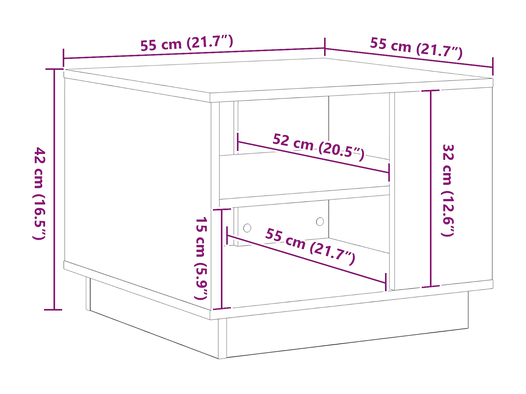 Table basse en chêne noir 55x55x42 cm en bois d'ingénierie