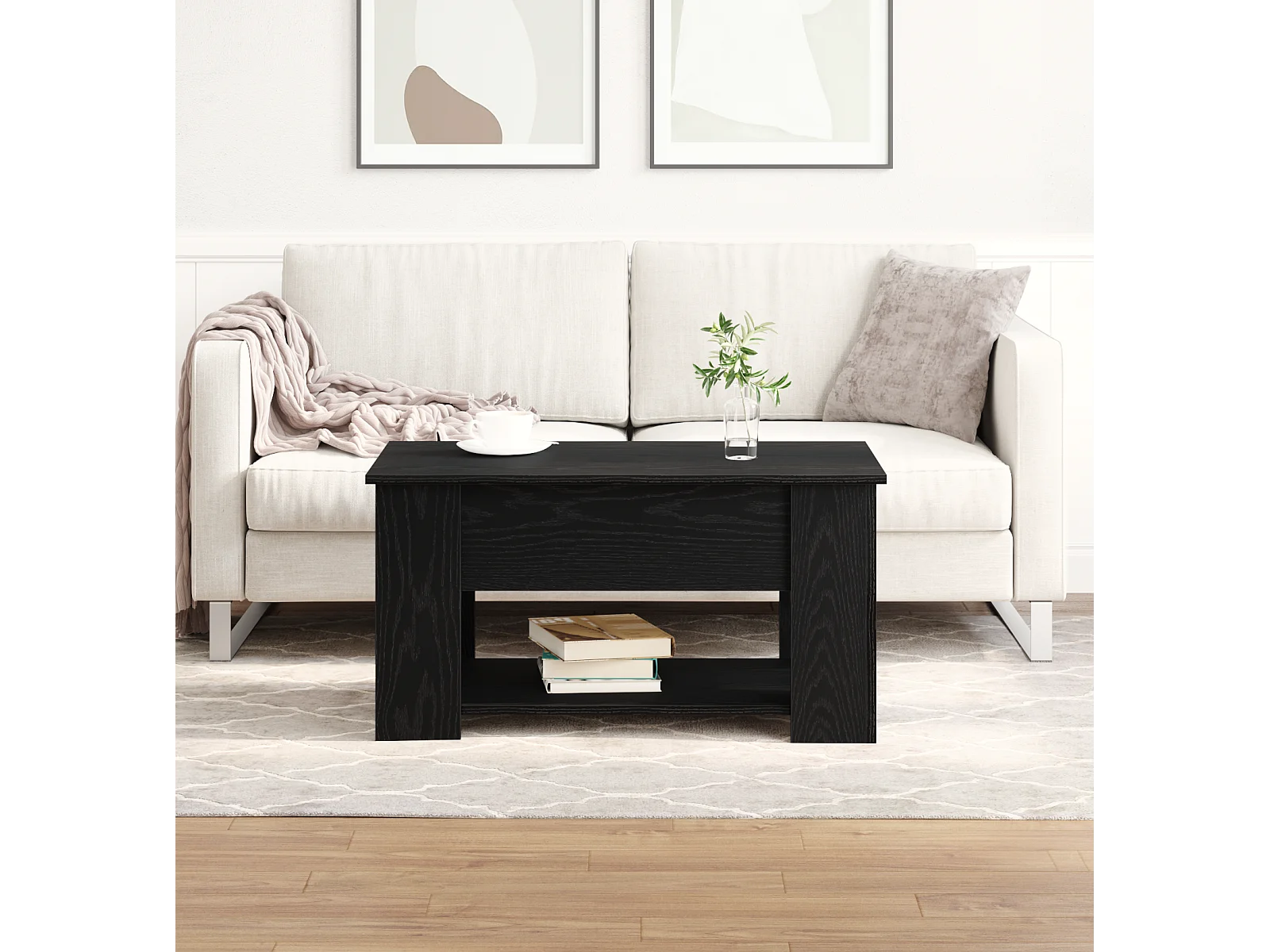 Table basse en chêne noir 79x49x41 cm en bois reconstitué