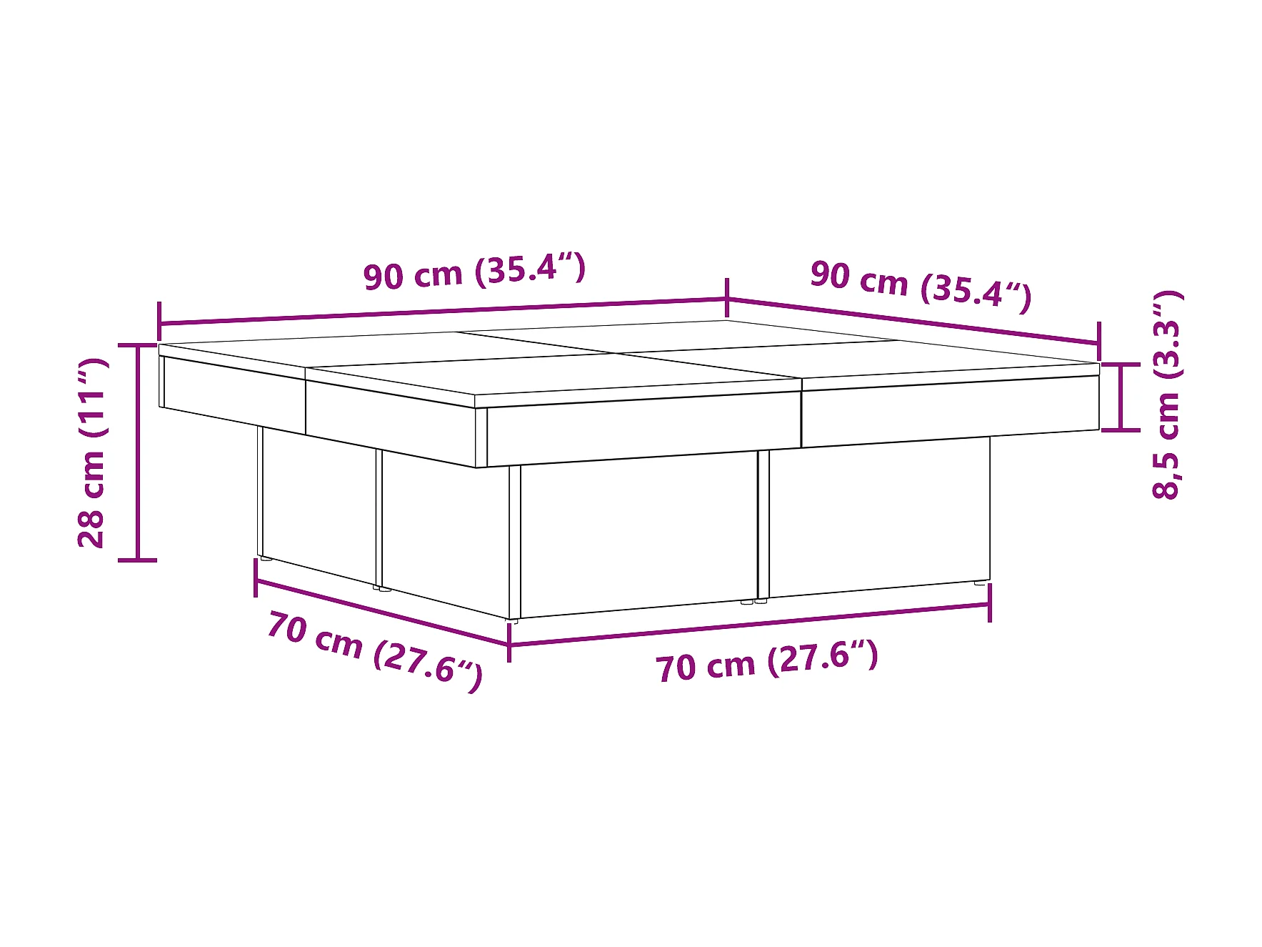 Table basse en chêne noir 90x90x28 cm en bois d'ingénierie