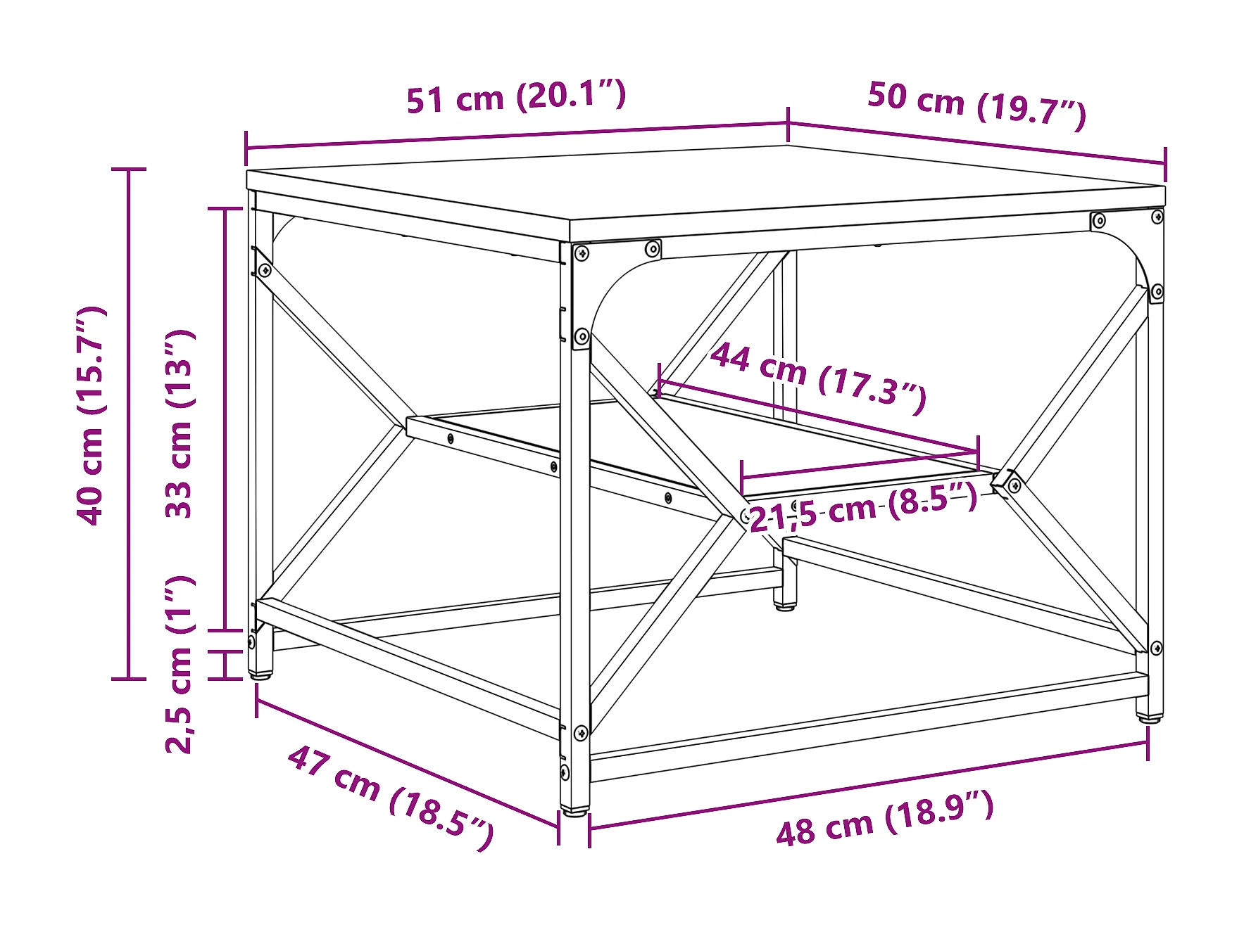 Table basse en chêne noir avec étagère, 51x50x40 cm, fabriquée en bois d'ingénierie