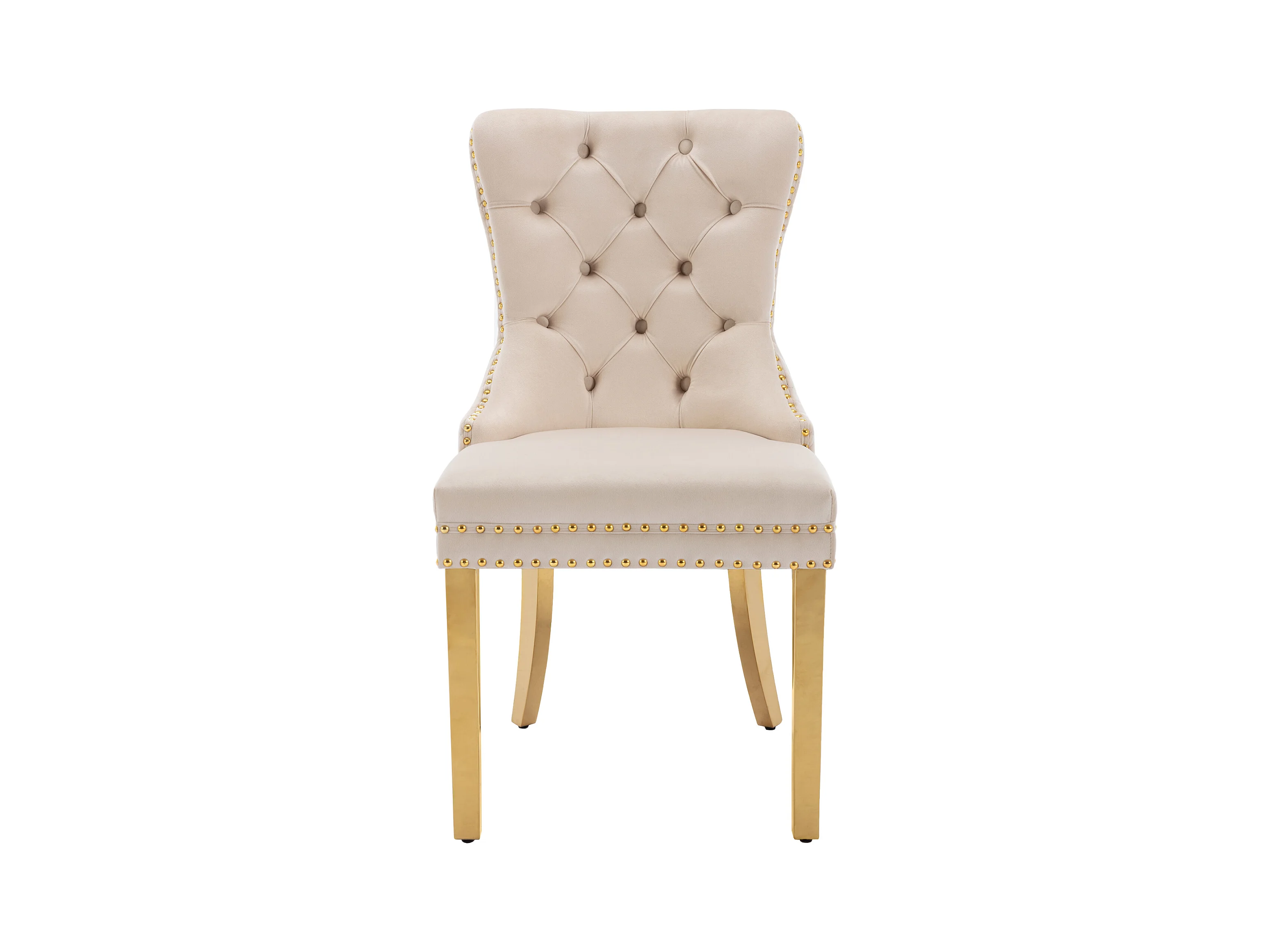 Fauteuil de salle à manger, 4 pièces, en velours, avec pieds métalliques dorés, beige (62.23x58.42x55.88 cm)