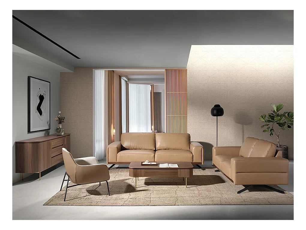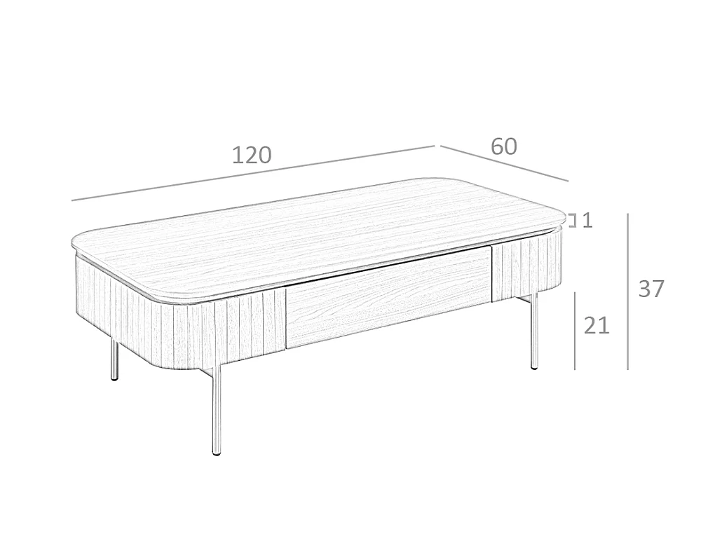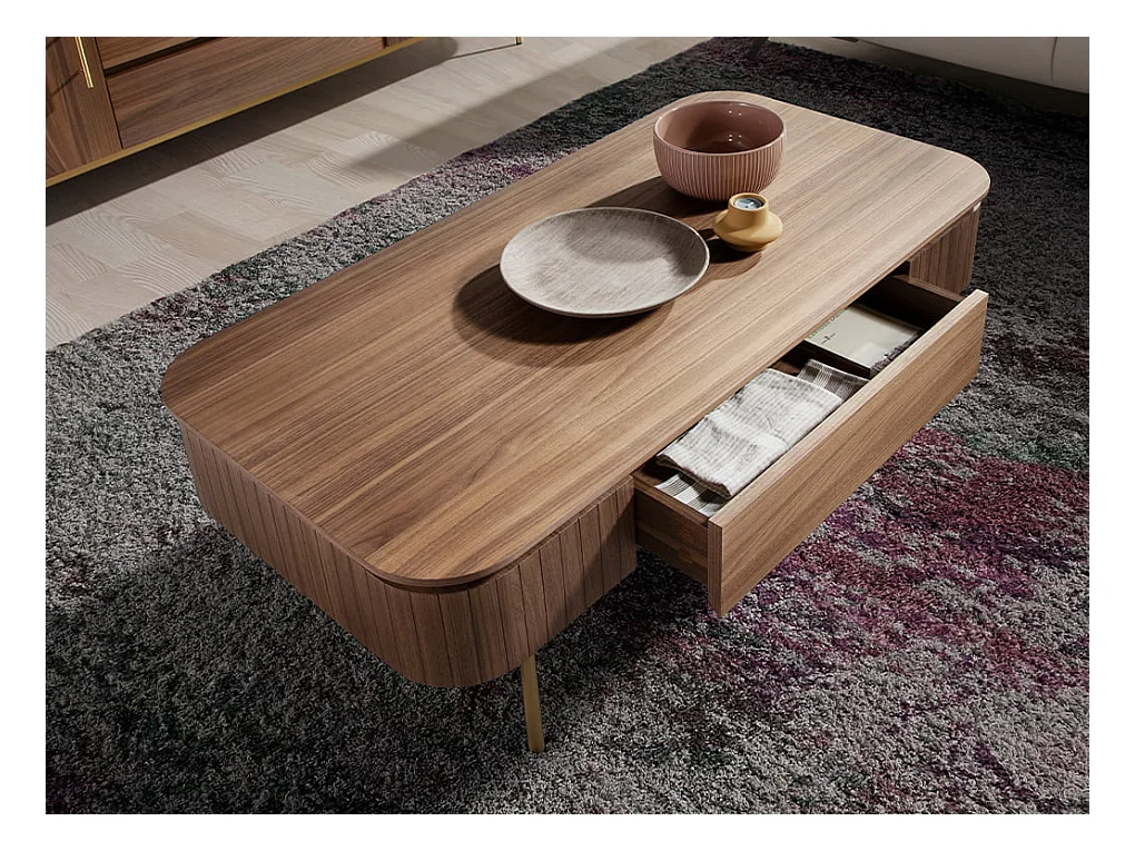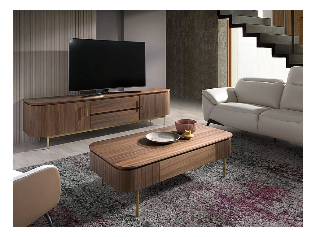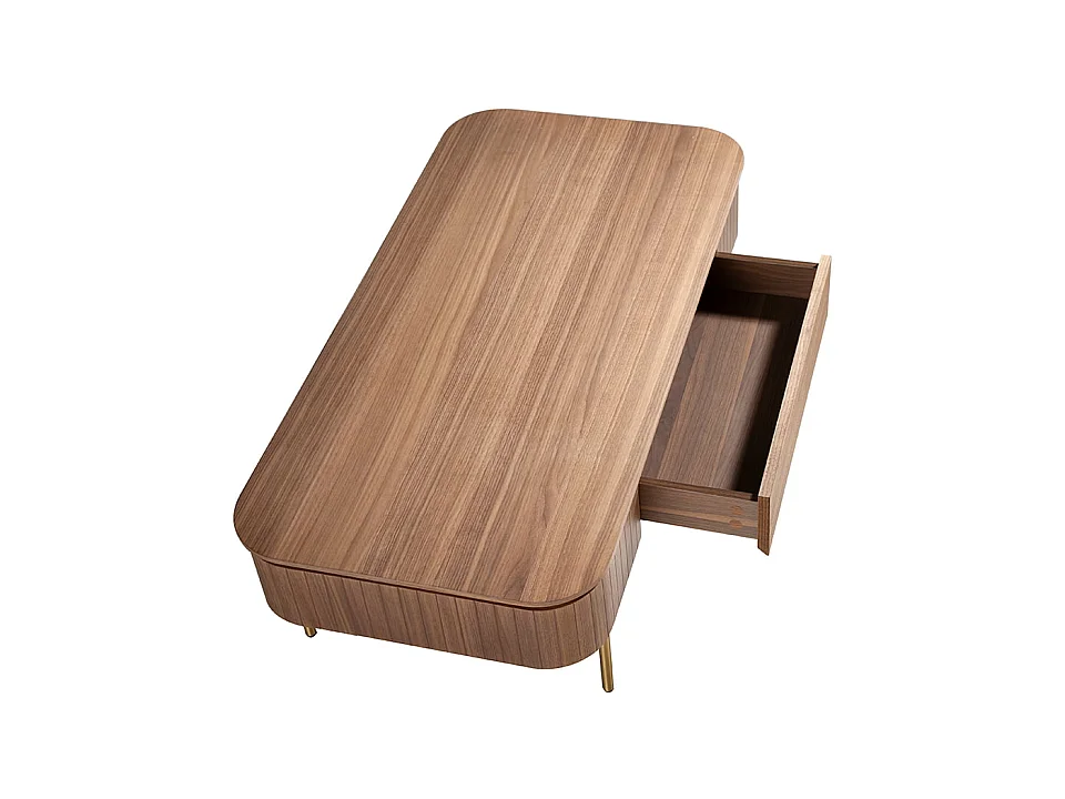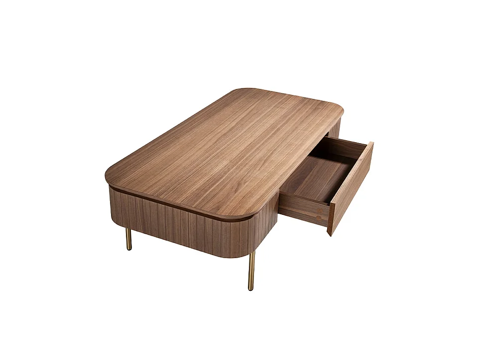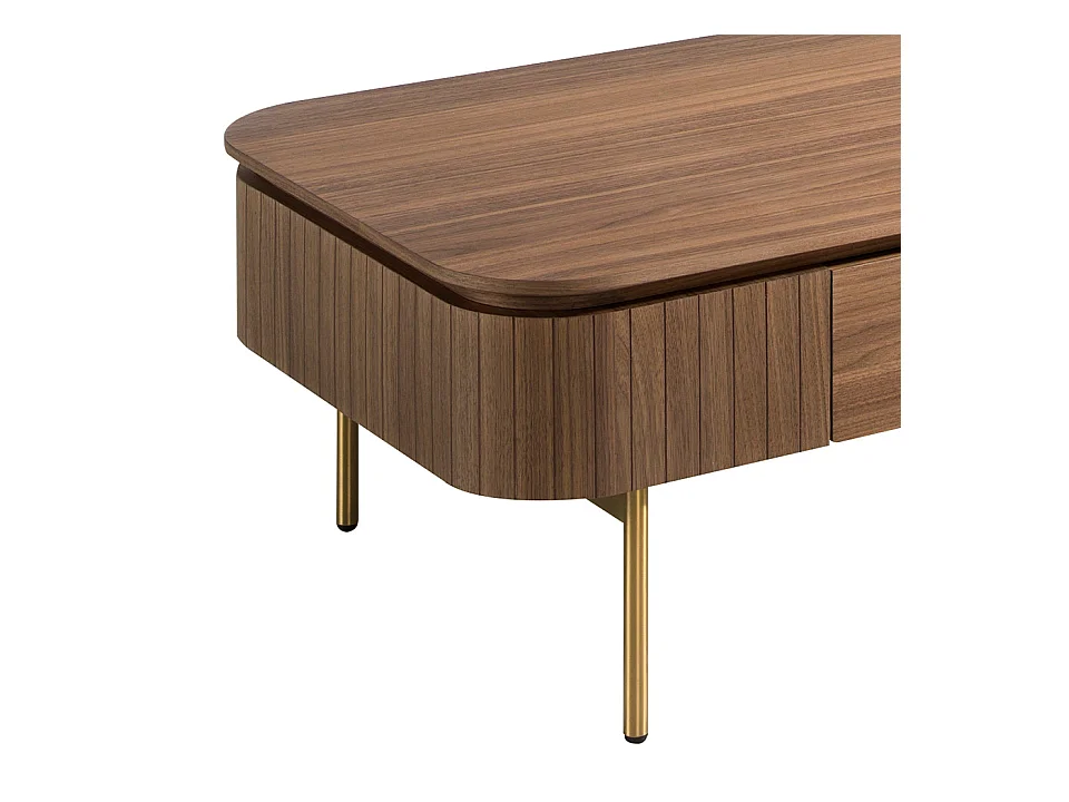 Table basse rectangulaire en noyer et acier poli or 2108 ANGEL CERDA